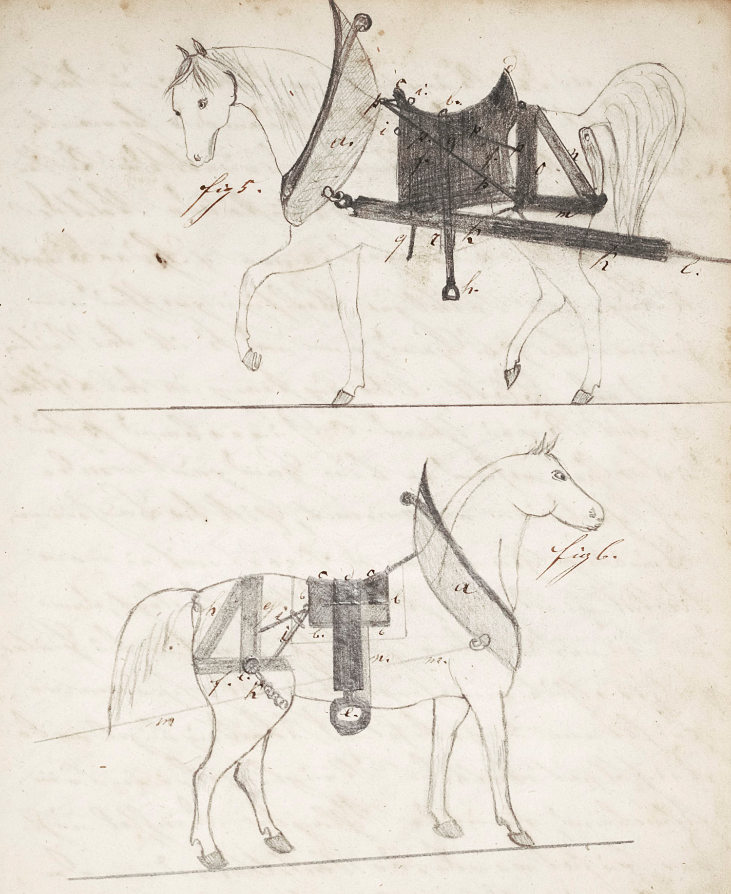 Ein Tagebuch, vermutlich aus der Hand eines badischen Landwirts oder Gutsbesitzers, das sowohl landwirtschaftliche Fachkenntnisse als auch persönliche Beobachtungen festhält. Die Aufzeichnungen sind teils in Abschnitte gegliedert, darunter "Das Einlagern‚ Das Eggen" und "Das Walzen". Der Autor beschreibt die einzelnen Tätigkeiten detailliert - etwa das Walzen mit Unterkapiteln zur "Zerkrümelung großer Schollen" oder zur "Bindung der Feuchtigkeit". Besonders liebevoll widmet er sich dem Pflügen, das an mehreren Stellen behandelt wird. Der Autor bekennt: "Das Pflügen ist mir immer schon die angenehmste und liebste Beschäftigung gewesen." Ergänzt werden die Texte durch einige Bleistiftzeichnungen, darunter drei angespannte Pferde sowie verschiedenes landwirtschaftliches Gerät und Werkzeuge. – Ein Blatt ausgebunden. Papierbedingt gebräunt und stellenweise am Rand mit Braun- und Wasserflecken. Die Sepiatinte im Mittelteil ist stellenweise leicht verblasst.