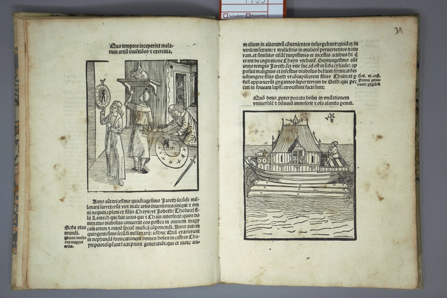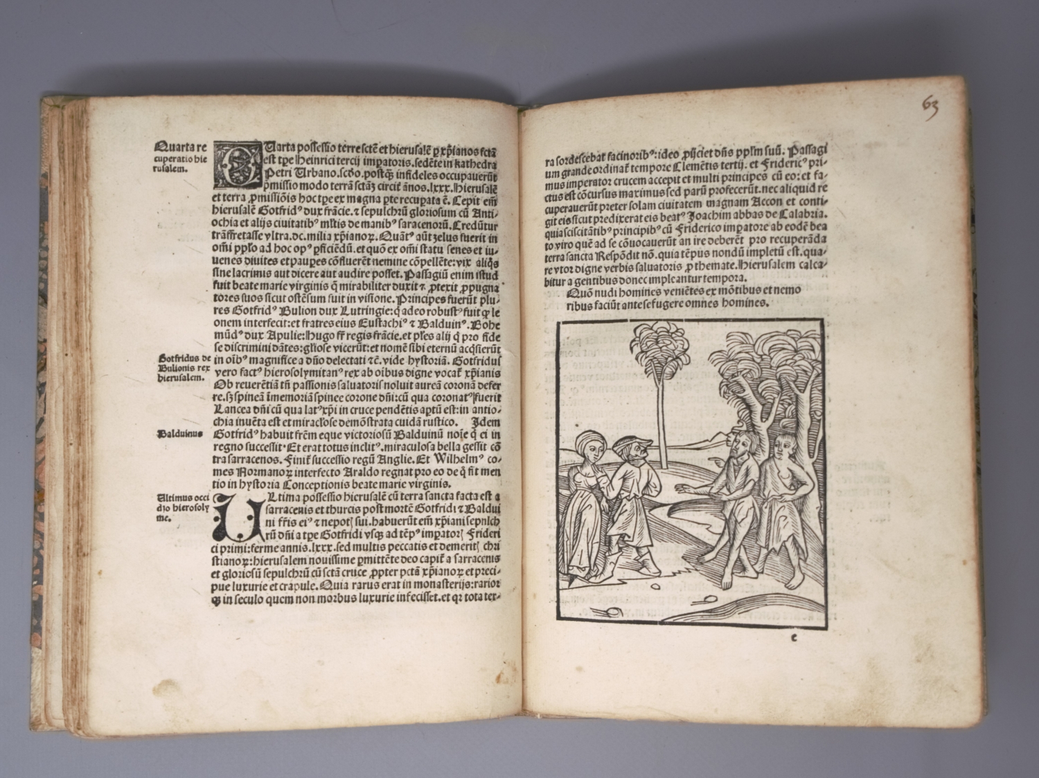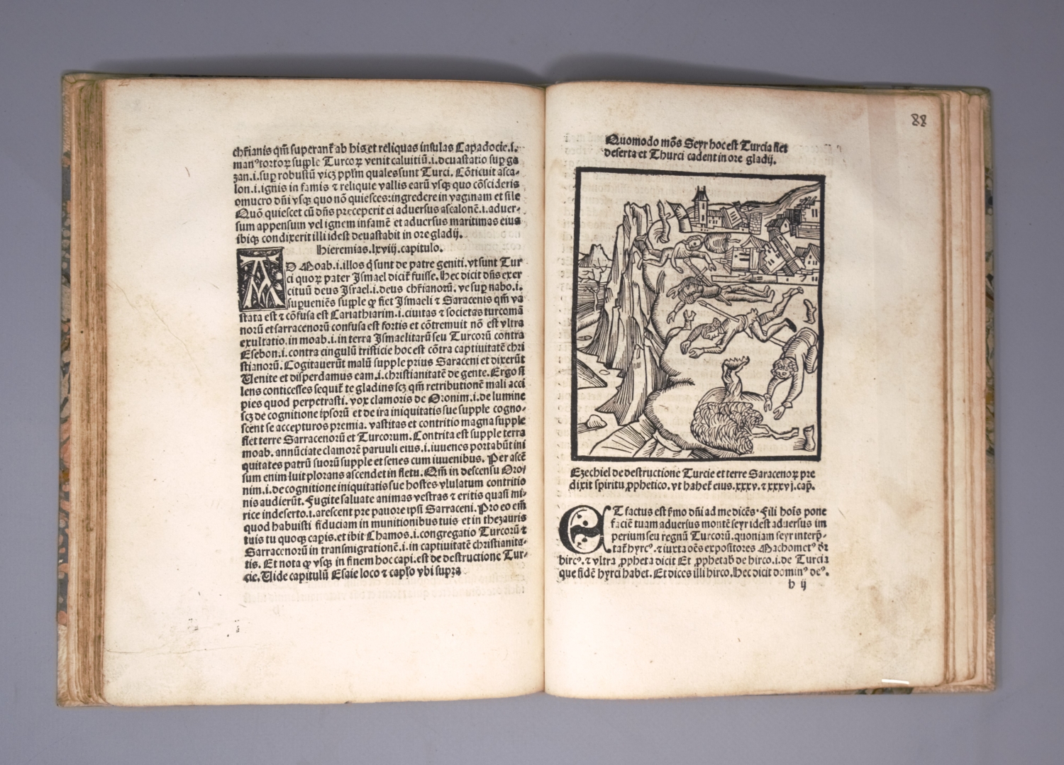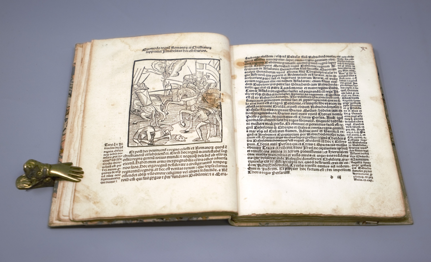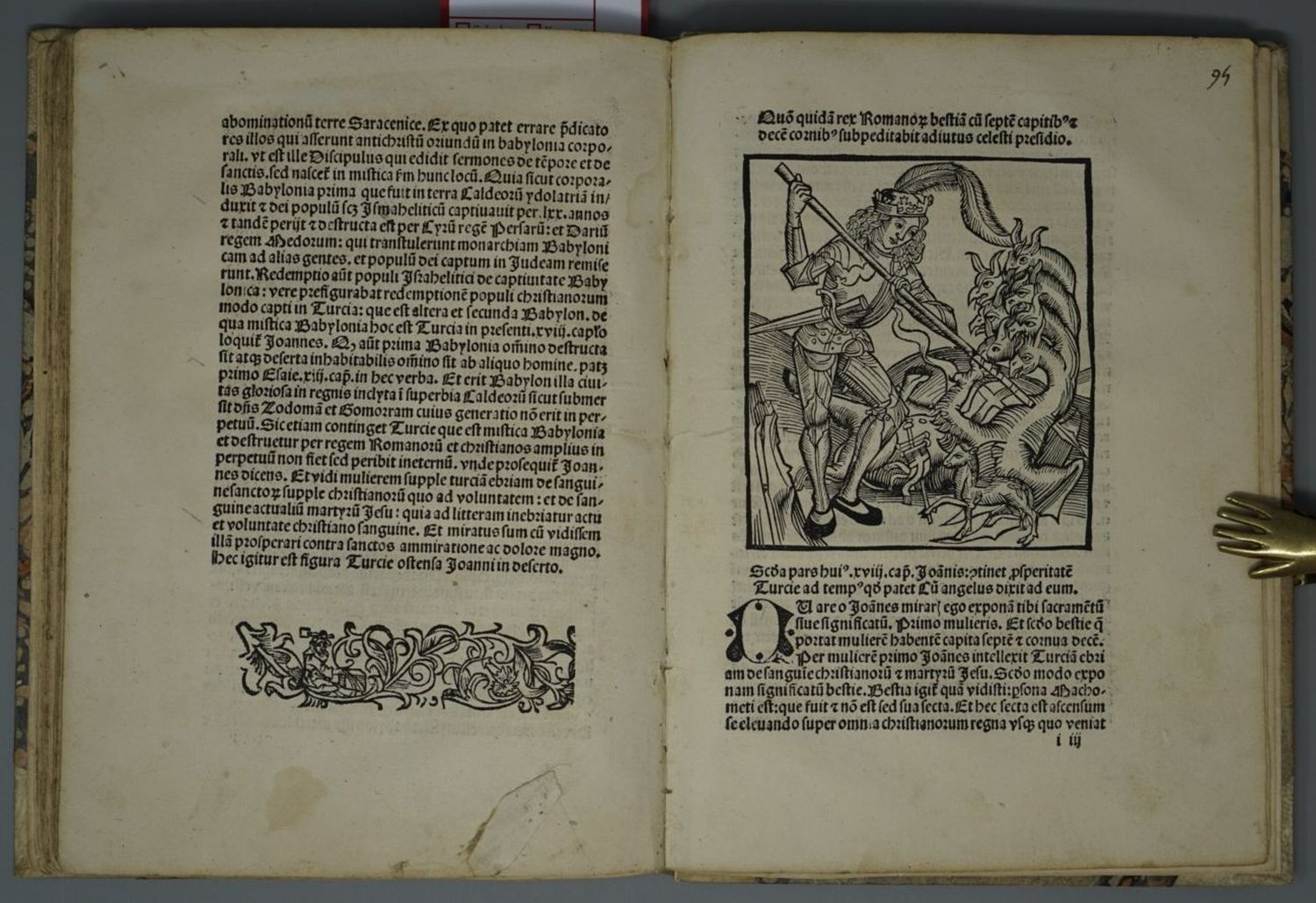 VD16 M 4935. STC 620. Adams M 1368. Fairfax Murray 289. Hieronymus I, 67. – Vierte illustrierte Auflage mit den Holzschnitten der ersten von 1498. Die Offenbarungen des Pseudo-Methodius mit dem Kommentar des Augsburger Geistlichen Wolfgang Aytinger (um 1465-1513) erschienen erstmals 1496 und wurden ab der zweiten Auflage (1498) auf Bestreben Sebastian Brants (1457 oder 1458-1521) mit zahlreichen Holzschnitten illustriert. "Die Holzschnitte zeigen, mit gewissem Naturalismus, Einflüsse Albrecht Dürers, können teilweise - wie der aus dem Narrenschiff übernommene 'Von vile der pfrunden' - vom Meister des Haintz Narr stammen" (Hieronymus).