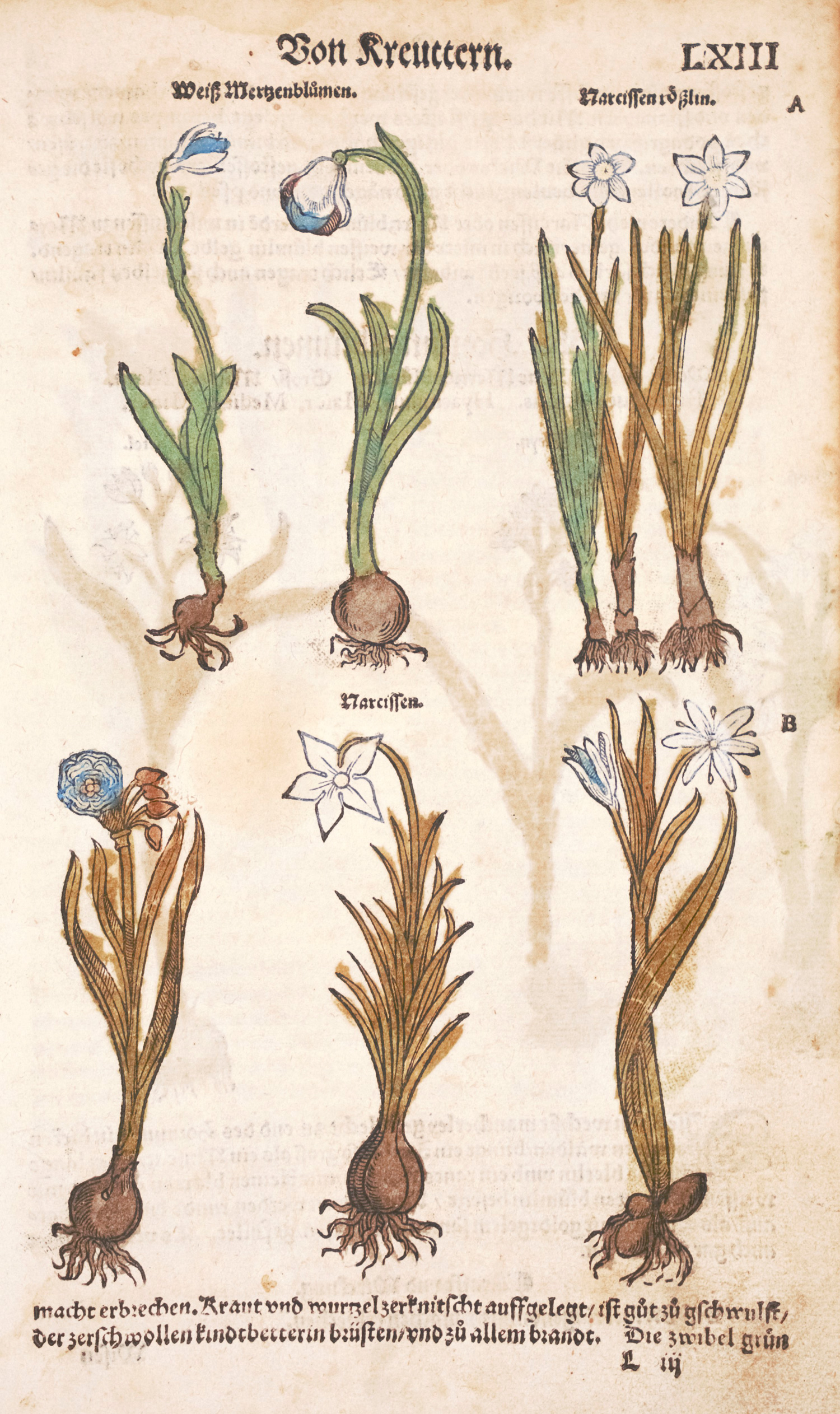 VD 16, ZV 13332. Benzing 235. Schreiber, Kräuterbücher S. 34 f. Nissen, BBI 1669. – Spätere Ausgabe des reich illustrierten Kräuterbuchs, hier in einem teils kolorierten Exemplar. Die zahlreichen Holzschnitte, z. T. von H. S. Beham stammend, zeigen nicht nur Kräuter und Pflanzen aller Art, sondern auch Tiere sowie vielerlei Gefäße, Destillieröfen, eine Edelsteinschleiferei, eine Badestube etc. Die beiden Titelholzschnitte zeigen eine Alchimistenwerkstatt, eine Apotheke nebst medizinischen Anwendungen etc.