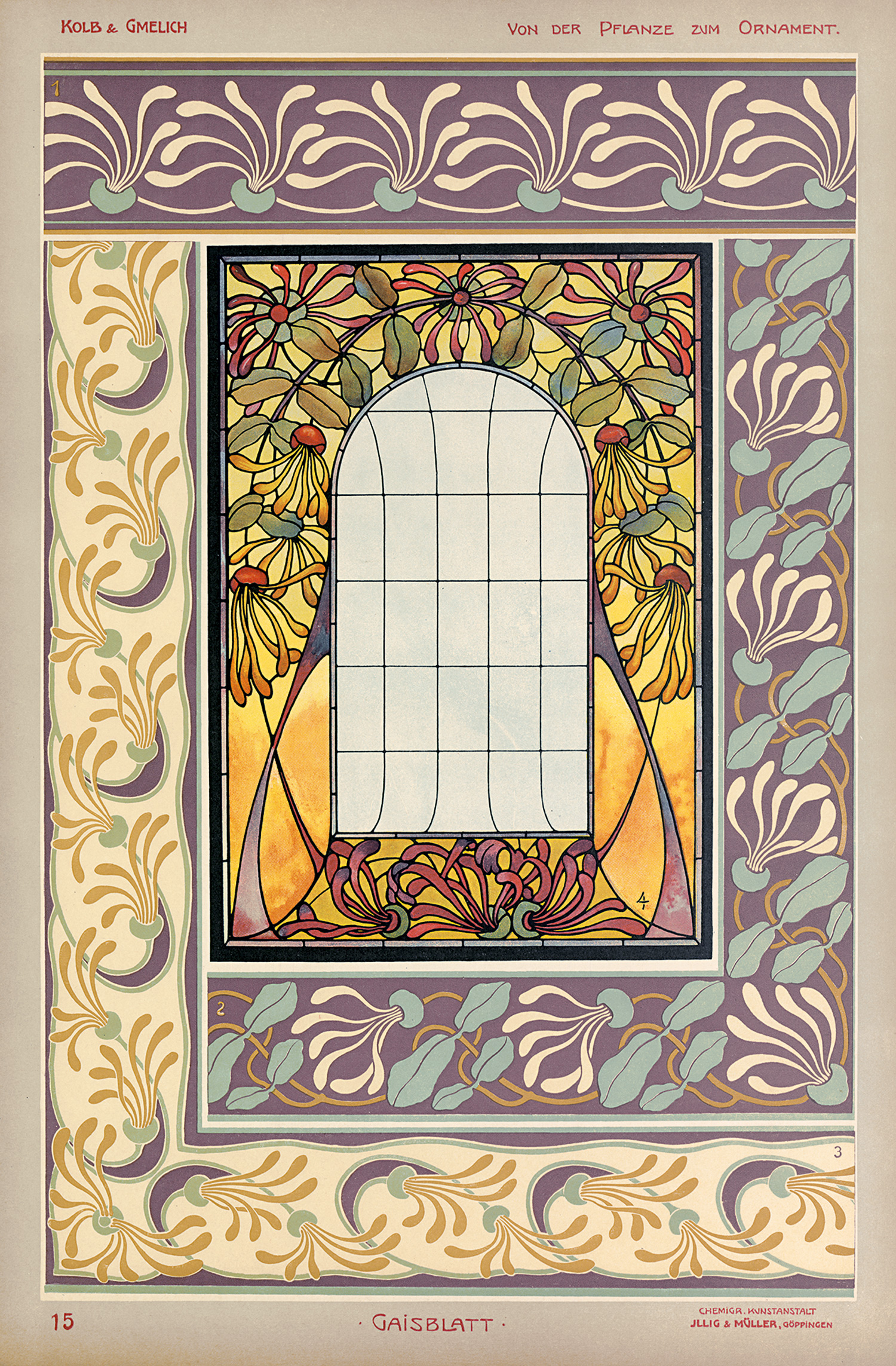 Bridson-White C782A. – Erste Ausgabe. Von Pflanzen wie Geißblatt, Glockenblume, Hopfen, Hagebutte, Wicke und Winde hergeleitete ornamentale Entwürfe im Jugendstil. – Im Rand schwach gebräunt, sonst wohlerhalten. Die Ecken mit Knicken und Stauchungen. Die Tafeln von frischer Farbigkeit.