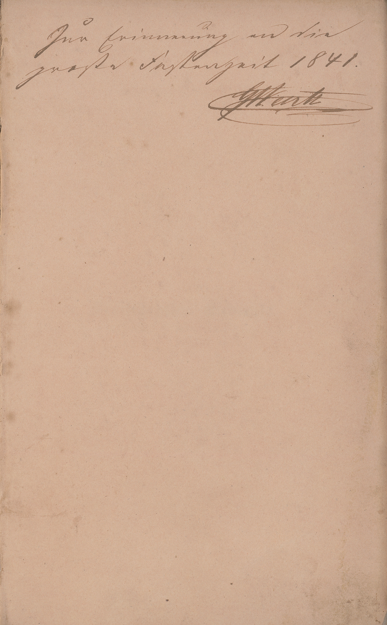 Fl. Vorsatz mit eigenhändiger Widmung des Vormärz-Dichters Georg Weerth: "Zur Erinnerung an die große Fastenzeit 1841. Georg Weerth". Der aus Detmold stammende Schriftsteller und Kaufmann Georg Ludwig Weerth (1822-1856) ist heute noch durch sein politisches Gedicht Das Hungerlied präsent, das 1844 während der Weberaufstände entstand und zum Kanon im Schulunterricht gehört. Als Jugendlicher begann Weerth zunächst eine kaufmännische Lehre und machte bereits 1838 als Sechzehnjähriger die Bekanntschaft mit dem ebenfalls aus Detmold stammenden, zwölf Jahre älteren Dichter Ferdinand Freiligrath, der ihn für Lyrik begeisterte und für Fragen der sozialen Gleichheit und Gerechtigkeit sensibilisierte. Erste lyrische Erprobungen fanden dann auch in Freiligraths "Literaten-Kränzchen" in Barmen statt, später dann in Karl Simrocks freisinnigem Dichterzirkel "Maikäferbund", den Weerth während seiner Bonner Zeit besuchte. Das vorliegende Widmungsexemplar datiert demnach aus Weerths allerfrühester Schaffenszeit als 19jähriger Kaufmannsgehilfe, im selben Jahr wie die Widmung erschien auch sein erstes eigenes Gedicht mit dem Titel Der steinerne Knappe in einer Anthologie. Den wohl prägendsten Schritt in seinem Leben machte Weerth wenig später 1843, als es ihn nach Nordengland zog, wo er die Folgen der Industrialisierung und die Not und Armut der Arbeiter in den Elendsvierteln erlebte. Auf einer Reise nach Belgien im Sommer 1845 lernte er Karl Marx kennen und schloss sich der kommunistischen Bewegung an. Er verfasste politische Gedichte, war Augenzeuge der 48er Revolution in Paris und ging im April 1848 gemeinsam mit Marx und Engels nach Köln, wo sie die berühmte Neue Rheinische Zeitung gründeten. Weerth leitete das Feuilleton und veröffentlichte hier in Fortsetzungen sein bekanntestes Werk, die Satire Leben und Thaten des berühmten Ritters Schnapphahnski. Enttäuscht vom Scheitern der Revolution wandte sich Weerth schließlich vom literarischen Schreiben ab. Er unternahm zahlreiche Handelsreisen durch halb Europa und zog 1852 auf die Karibikinsel Saint Thoma, von wo aus er auch die USA, Mexiko, Kuba und Brasilien bereiste. Im März 1856 ging er nach Havanna auf Kuba, wo er am 30. Juli 1856 im Alter von nur 34 Jahren an einer Hirnhautentzündung starb. Friedrich Engels lobte ihn später als den "erste(n) und bedeutendste(n) Dichter des deutschen Proletariats" (In: Der Sozialdemokrat. Nr. 24. Zürich, 7. Juni 1883). Sein Nachlass liegt verstreut in Amsterdam, Moskau und in seiner Heimatstadt in der Lippischen Landesbibliothek. – Stockfleckig.