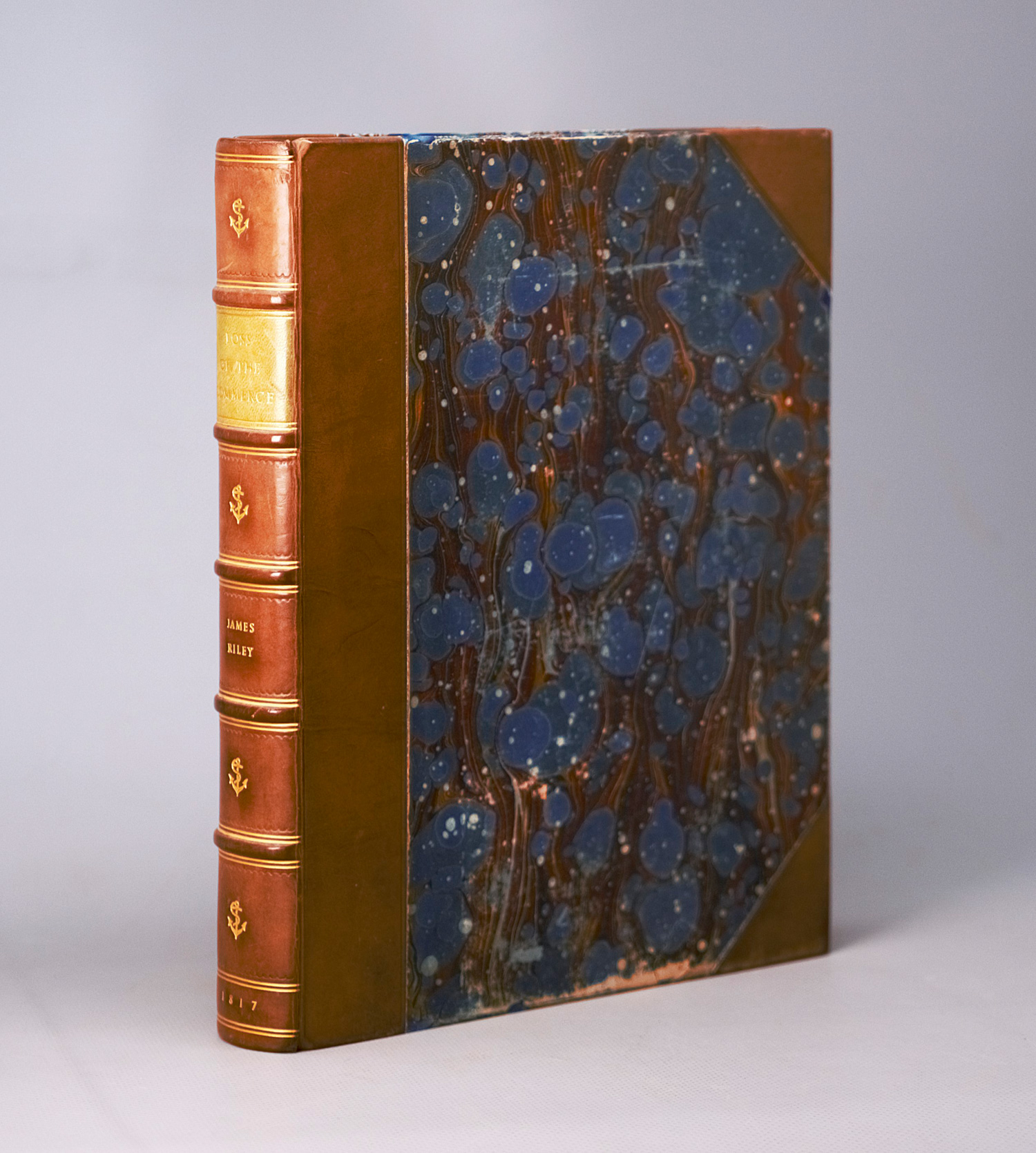 Riley, James. Loss of the American Brig Commerce, Wrecked on 1817 the Western Coast of Africa, in the Month of August, 1815. With an Account of Tombuctoo, and of the Hitherto Undiscovered Great City of Wassanah. XVI, 618 S., 1 w. Bl. Mit einer gefalt. Kupferkarte. 27 x 21 cm. Moderner HLederband mit RVergoldung und grünem goldgepr. RSchild. London, J. Murray, 1817.