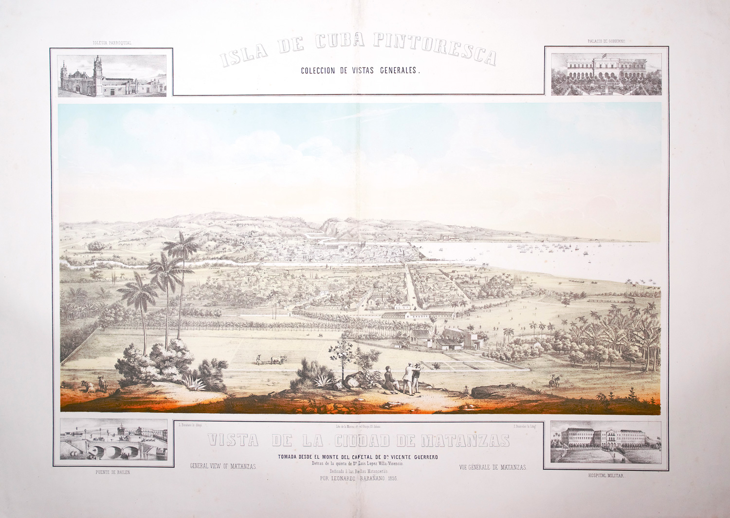Baranano, Leonardo. Isla de Cuba Pintoresca. Colección de vistas generales. Vista de la ciudad de Matanzas. Chromolithographie. 47 x 69 cm (Darstellung) bzw. 59 x 83 cm (Blatt). 1856.