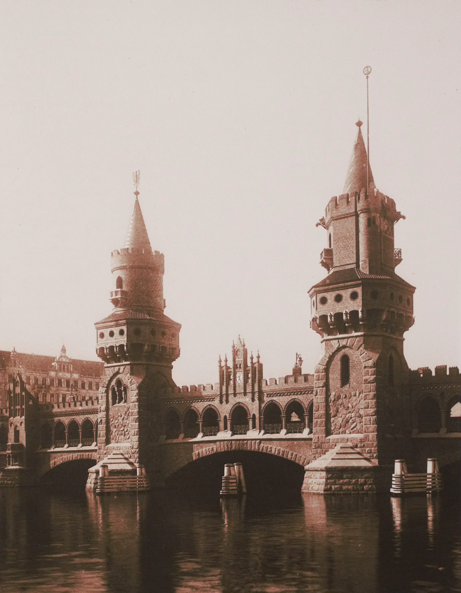 Die Strassen-Brücken der Stadt Berlin. Herausgegeben vom Magistrat. 2 Bände (Text- und Tafelband). X, 220 S. Mit 203 Textabbildungen und 93 (davon 52 in Kupfertiefdruck) teils doppelblattgroßen Tafeln. 38,5 x 27 cm. OLeinen (gering fleckig und berieben) mit goldgeprägtem Rücken- und Deckeltitel. Berlin, Springer, 1902.