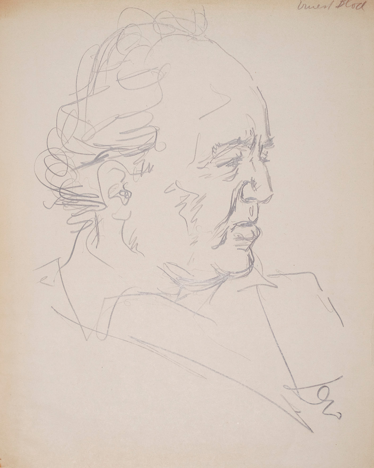 Der amerikanische Komponist David Diamond (1915-2005) war eine Koryphäe seiner Zeit. Zu seinem Oeuvre gehören Oeuvre Sinfonien, Kammermusik, Konzerte, Ballettmusik, Klavierstücke etc. – Etwas fleckig, sonst wohlerhalten. – Dabei: I. Derselbe. Portrait von Ernest Bloch. Signierte Original-Zeichnung auf Papier. 27 x 20 (Darstellung) bzw. 30,5 x 24 cm (Blatt). Um 1950. - II. Derselbe. Portrait von Charles Ives. Signierte Original-Zeichnung auf Papier. 25 x 17,5 cm (Darstellung) bzw. 30,5 x 24 cm (Blatt). Um 1950.