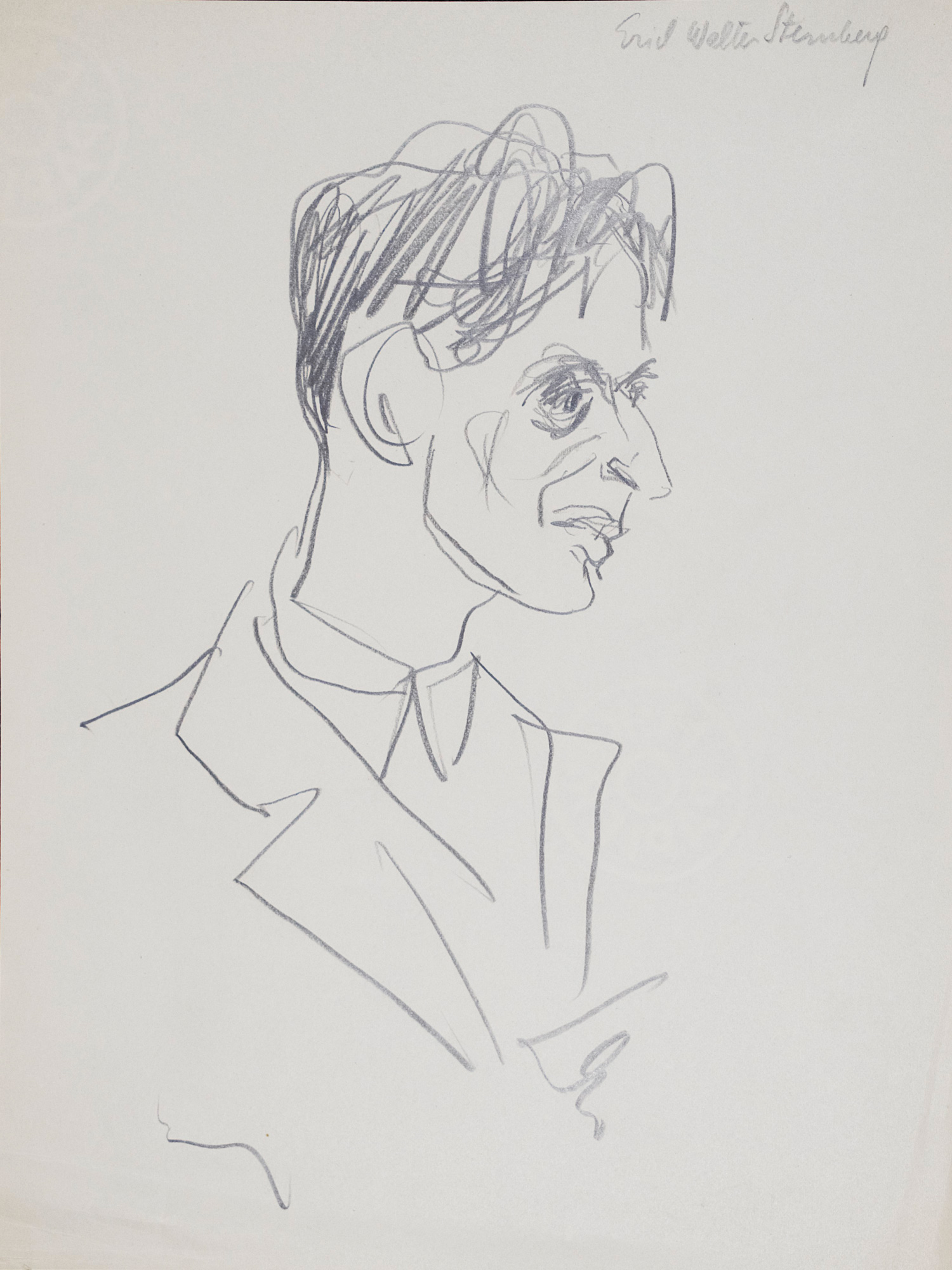 Dolbin, Benedikt Fred. Portrait von Erich Walter Sternberg. Signierte Original-Tuschezeichnung auf Papier. 28 x 30 (Darstellung) bzw. 29,5 x 34 cm (Blatt). Um 1950.