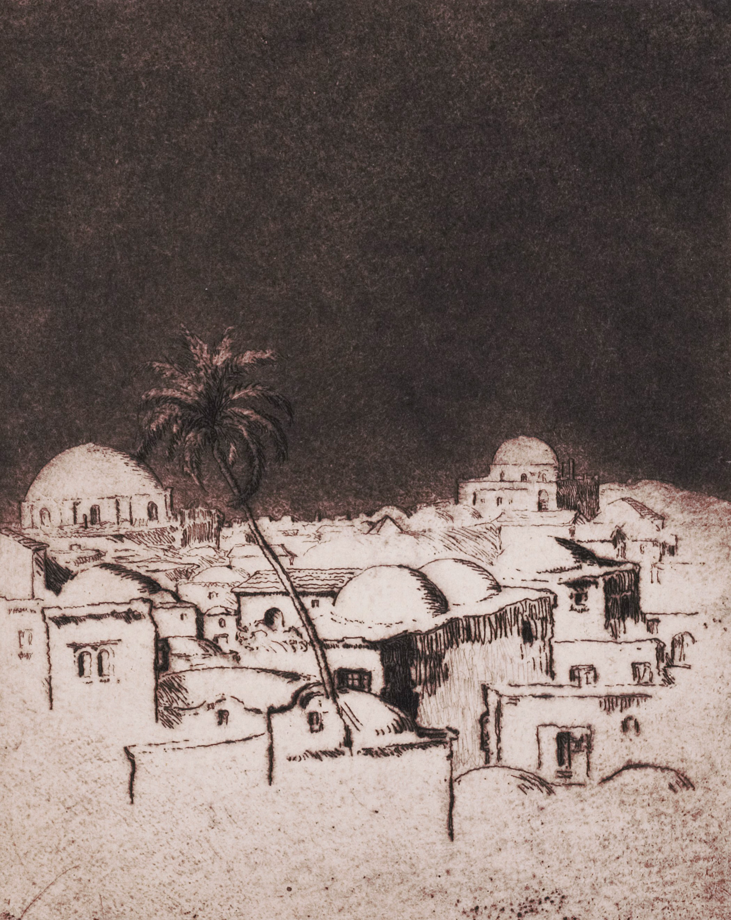 Holitscher, Arthur. Gesang an Palästina. 28 S., 1 Bl. Mit 12 ganzseitigen signierten Orig.-Radierungen von Hermann Struck. 34,5 x 26,5 cm. Dunkelroter OMaroquinlederband (berieben) mit goldgeprägtem Deckeltitel undd KGoldschnitt. Berlin, Hans Heinrich Tillgner, 1922.