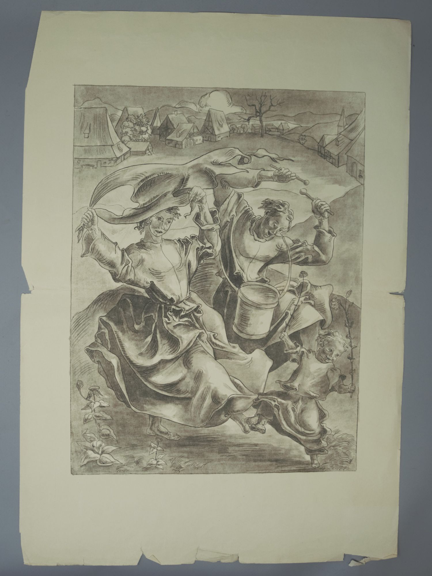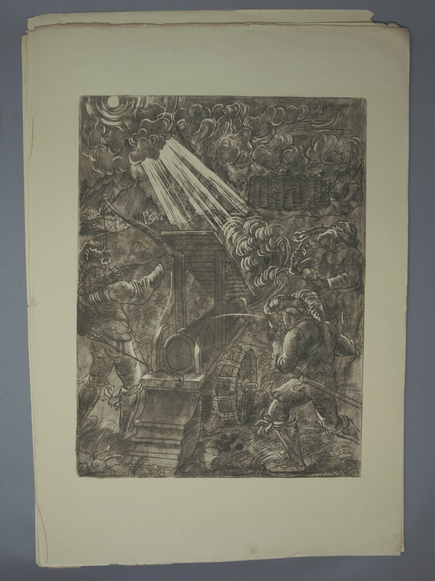 Einzige Ausgabe der seltenenen Illustrationsfolge zu Hermann Löns 1910 erschienenen Roman aus der Zeit des Dreißigjährigen Krieg. Marie Elisabeth Voigt war u. a. von 1928 bis 1933 Meisterschülerin bei Käthe Kollwitz. – Titel fleckig, die Tafeln mit Randläsuren, durchgehend mit Mittelknickfalte.
