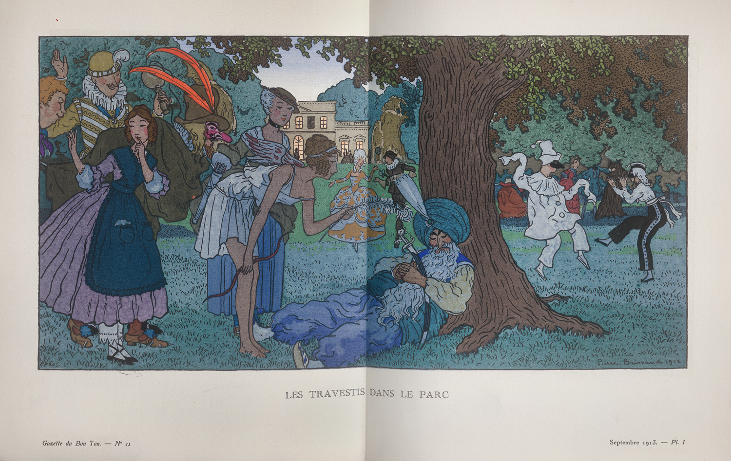 Lipperheide Zb 290. Colas 1202. Carteret IV, 180. Feilchenfeldt-Brandis K1. – Der vollständige erste bis vierte Jahrgang in der für Deutschland vom Verlag Paul Cassirer (ab Heft 4 Februar 1913) vertriebenen Version der luxuriösesten Modezeitung des Art Déco mit den duftigen, fein kolorierten Modetafeln von Künstlern wie Guy Annoux, Bakst, Pierre Brissaud, Garcia Carlègle, H. Robert Dammy, Drésa, Fabius, J. Gose, Georges Lepape, A. Lorenzi, Charles Martin, A. E. Marty, Paul Méras, Maggie Monnier, Bernard B. de Monvel, Simon A. Puget, Strimpl, Maurice Taquoy und anderen.
