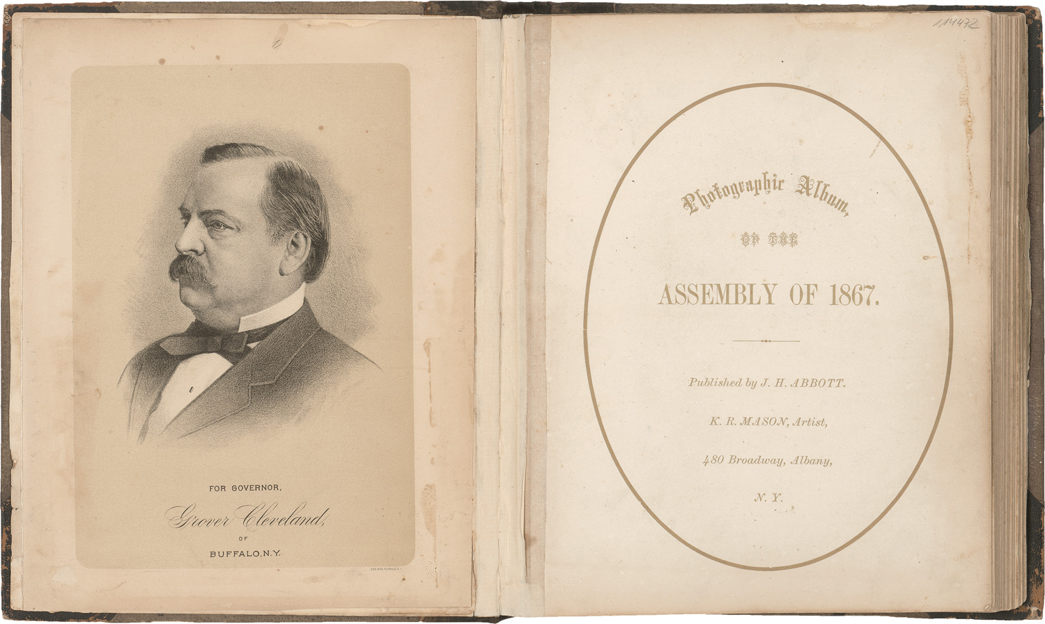 Das Album stammt aus dem persönlichen Besitz von Samuel M. Purdy aus Westchester County, New York, Mitglied der New Yorker Staatsversammlung 1867-1868. Die Wahl von 1866 fand am 6. November statt, wobei die in diesem Album dokumentierten Versammlungsmitglieder für ein Jahr gewählt wurden. Die Senatoren für zwei. Neben einer montierten Lithographie des späteren US-Präsidenten Grover Cleveland beginnt das Album mit einem Porträt von Reuben E. Fenton, Gouverneur von New York von 1865-1868 und US-Senator von 1869-1875. Andere Fotografien zeigen Stewart L. Woodford, Vizegouverneur von New York (1867-1869), wie auch Edmund L. Pitts, 1867 Sprecher der New Yorker Staatsversammlung. Mehrere CDV-Porträts sind mit schwarzer Tinte signiert, darunter wie Ornon Archer, Stephen Baker, Samuel M. Barker und andere, die ein breites Spektrum an politischen Persönlichkeiten der 1860er Jahre in New York dokumentieren. – Die meisten Fotos sind an den Rändern verblichen und innerhalb der Darstellung etwas fleckig, die Albumseiten etwas stockfleckig. Das Frontispiz auf den fl. Vorsatz montiert.