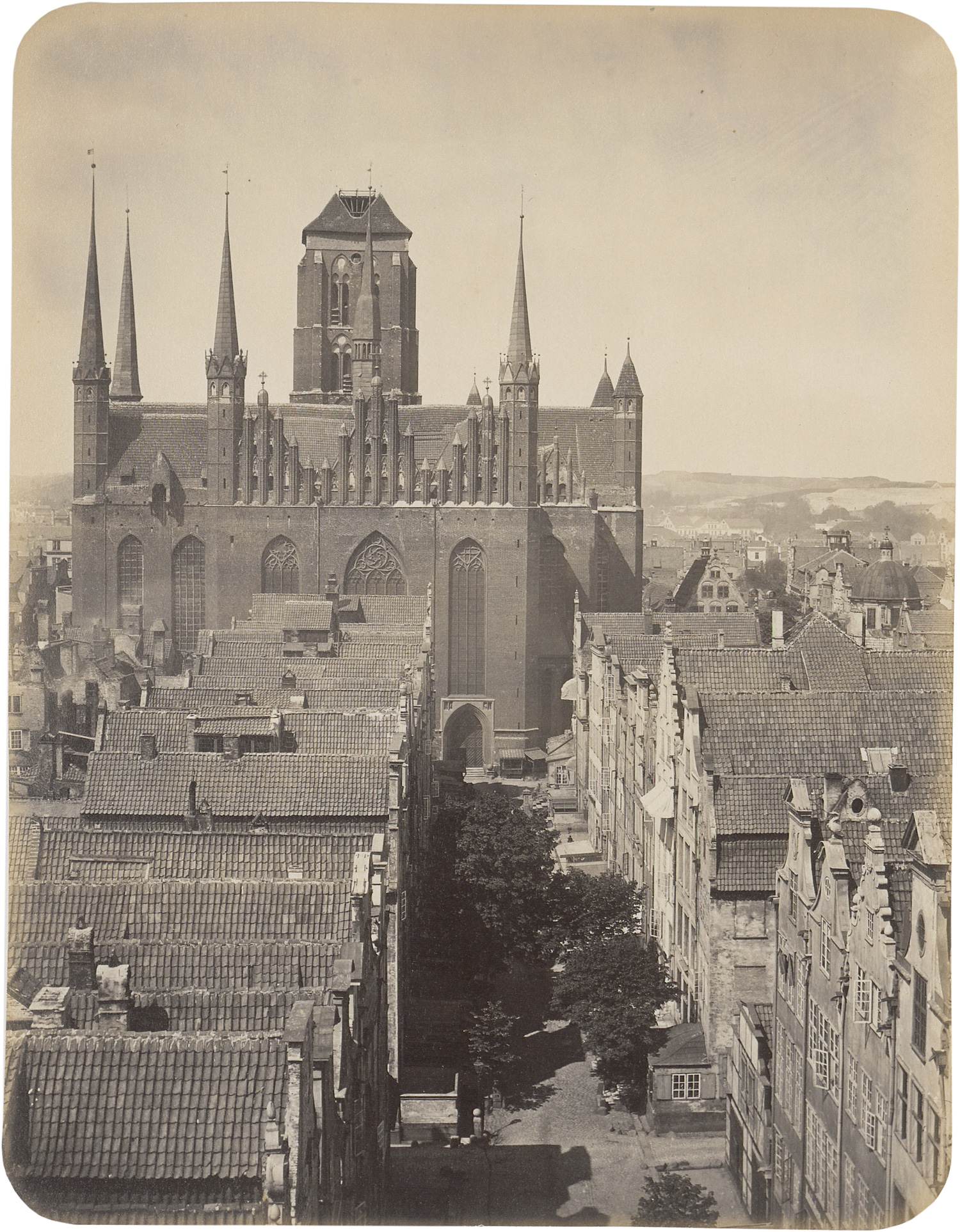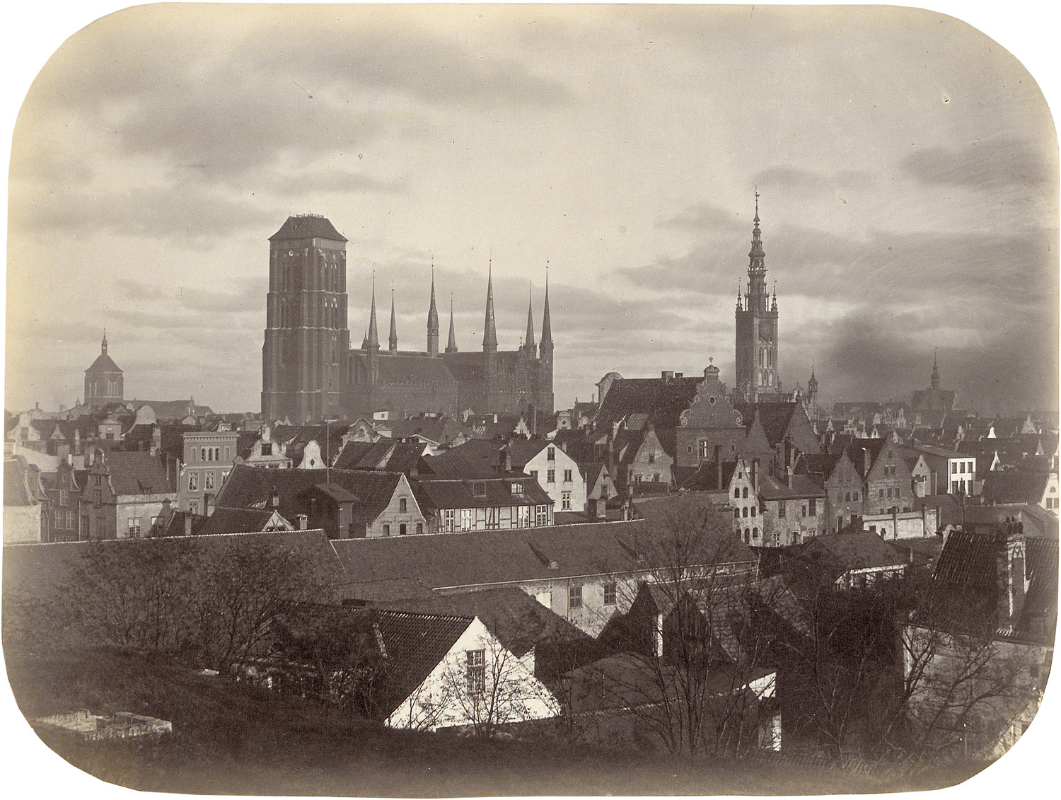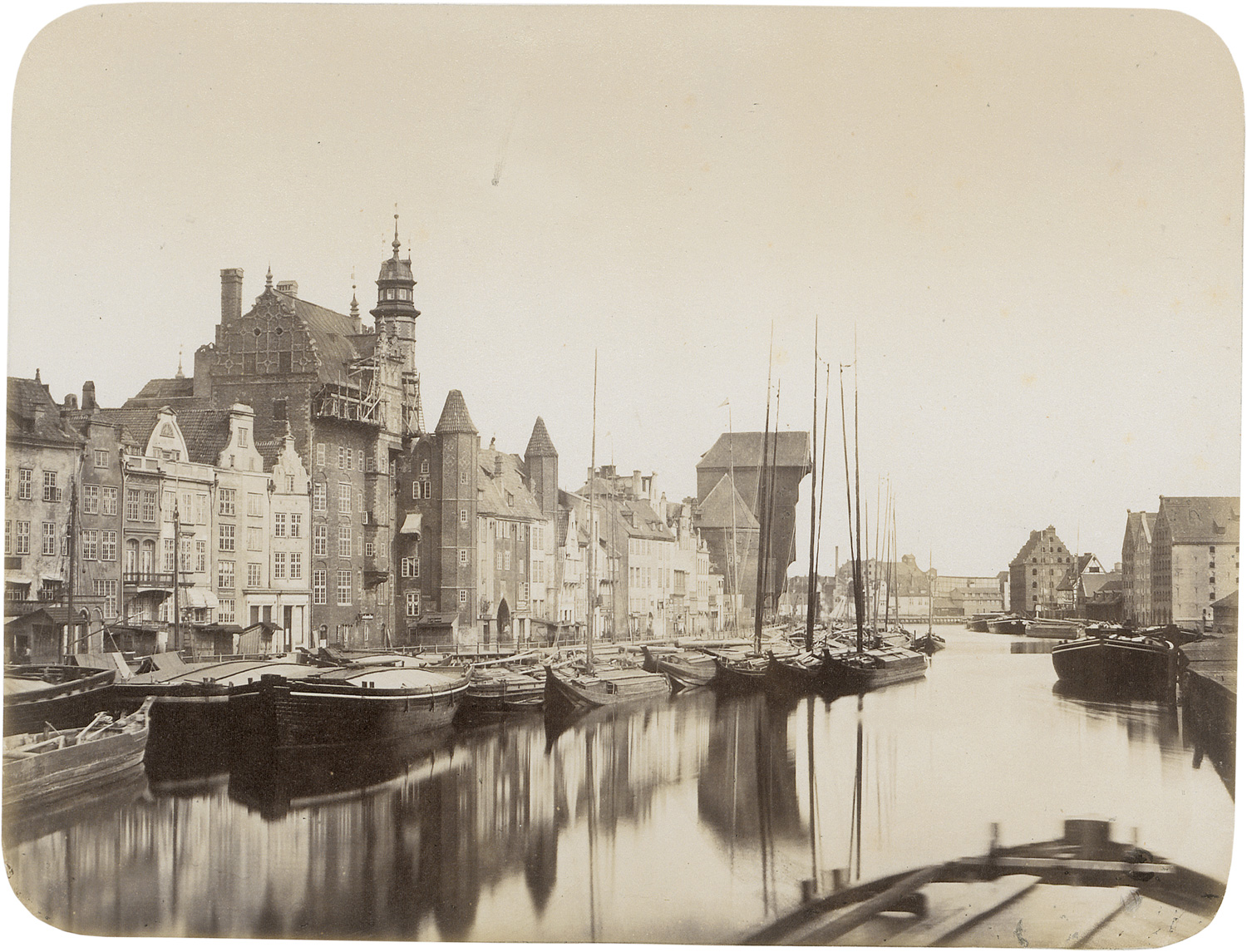 Photographer: A. Ballerstaedt (active ca. 1865-1880). Views of Danzig. Ca. 1870s. 21 albumen prints, mounted to card. Each between 16 x 22 cm and 19 x 24 cm or reverse (28 x 37 cm). All with photographer’s blind stamp in lower margin: “A. Ballerstaedt / Danzig / Photograph. Atelier”; annotated in pencil on lower margin of recto as well as in black ink on verso in a contemporary hand.