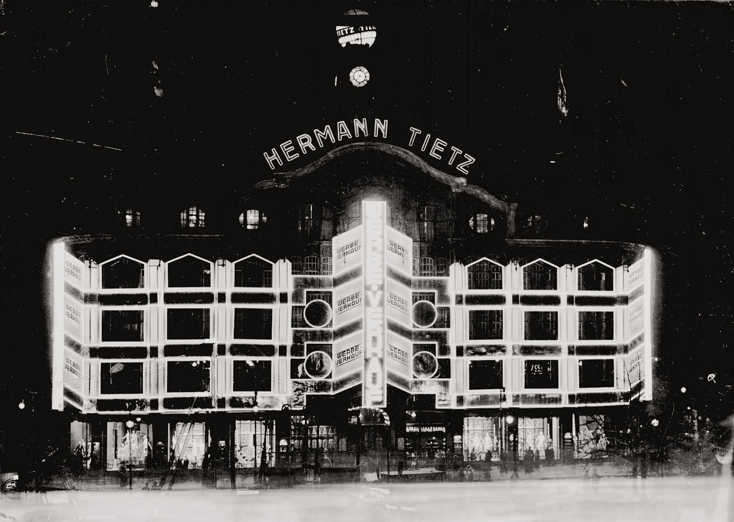 The series includes views of modern commercial architecture, such as the department stores Kaufhaus des Westens (KaDeWe) and Michels & Cie. on Kurfürstendamm (both designed by Johann Emil Schaudt); the main branch of Michels & Cie. on Leipziger Straße; the furrier C.A. Herpich & Söhne on Leipziger Straße (Erich Mendelsohn); and several branch offices of Hermann Tietz (Hertie).