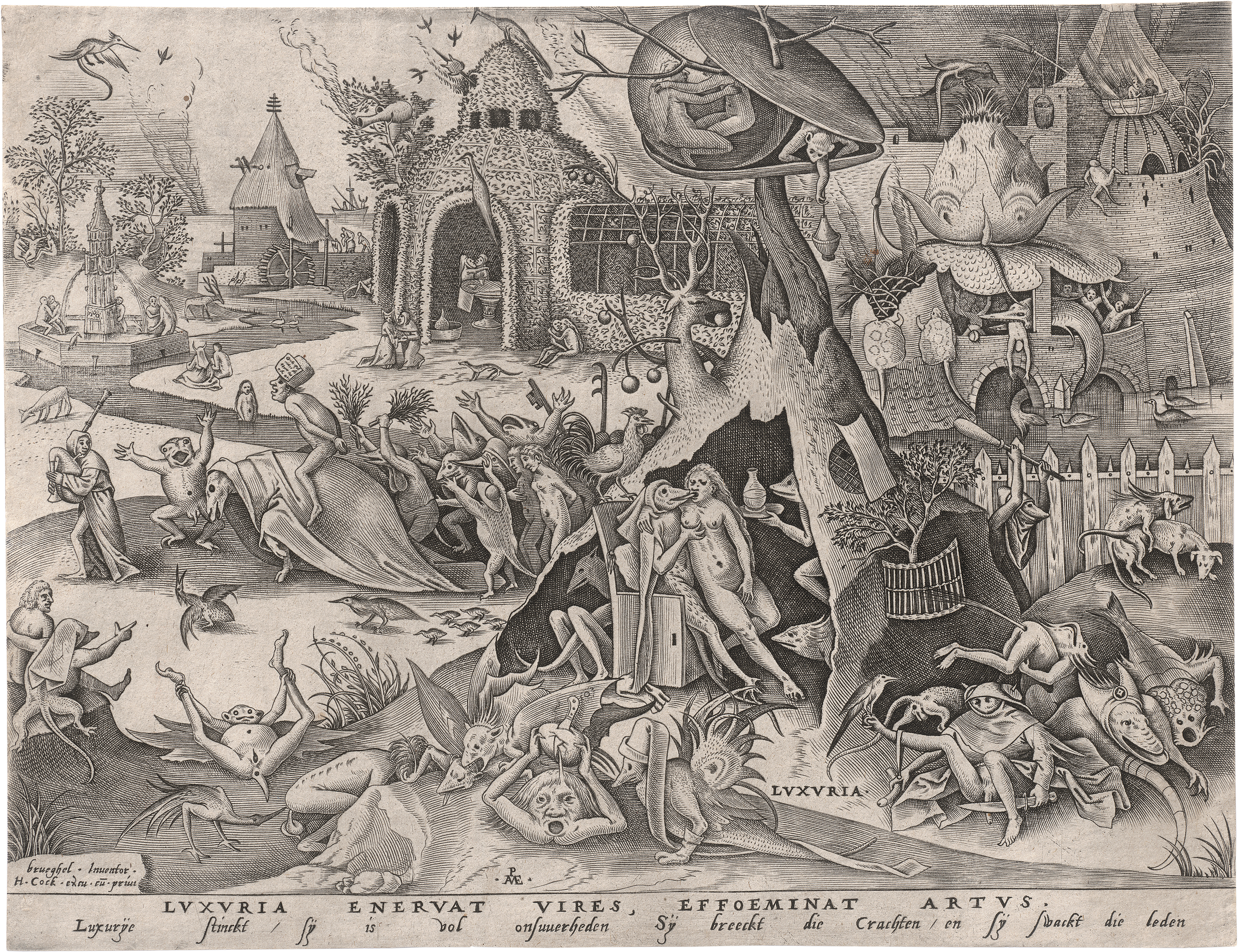 nach. Luxuria. Kupferstich von Pieter van der Heyden. 22,4 x 29, cm. (1558). Hollstein (Bruegel) 131, Hollstein (Cock) 242, Bastelaer 131, Riggs 39, Orenstein (New Hollstein) 27, Bassens/Grieken 11 f. Wz. Gotisches P.