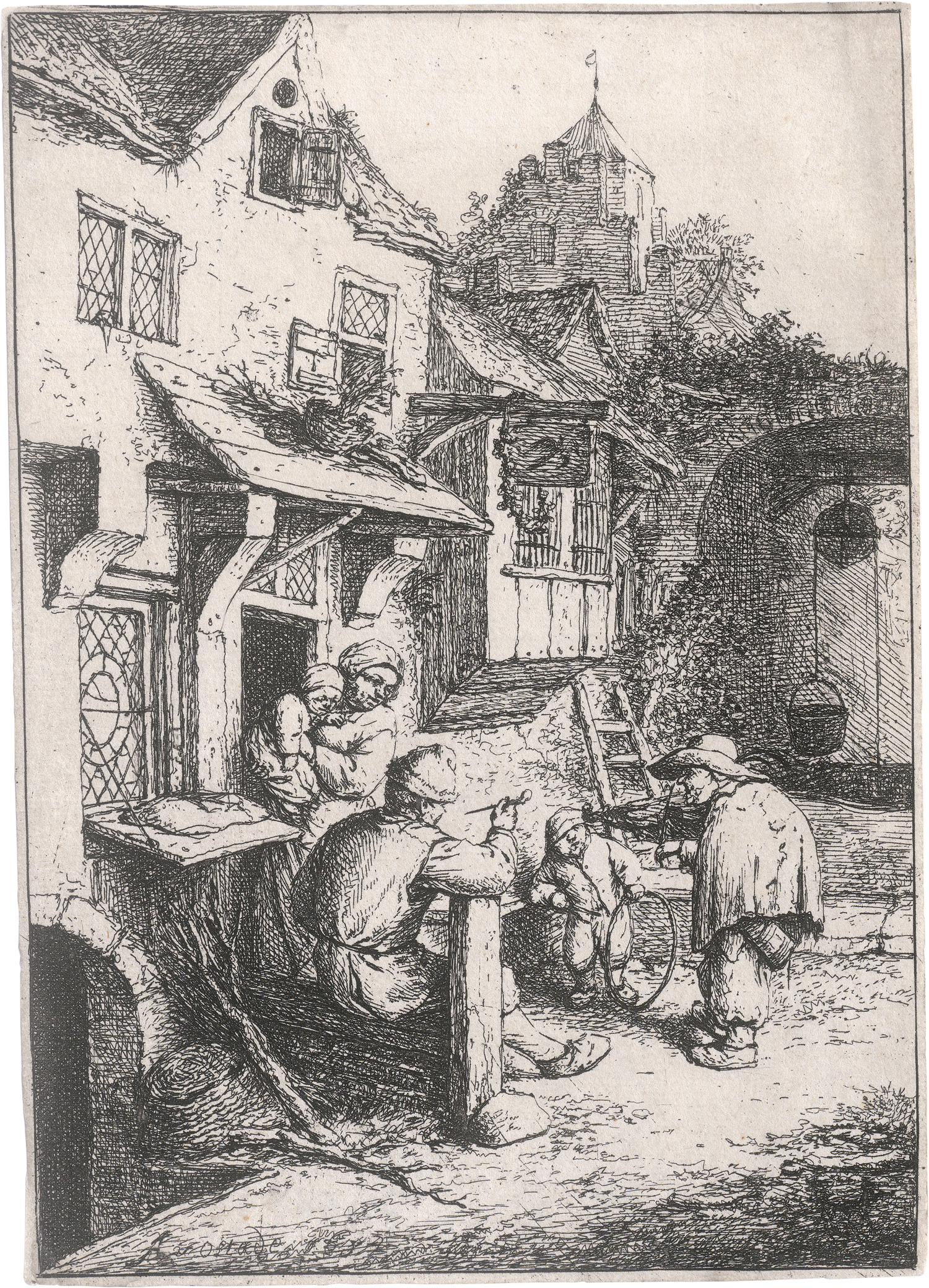Der bucklige Geiger. Radierung. 15,5 x 11 cm. Um 1652. B. 44, Dutuit II (von IV), Davidsohn III (von V), Godefroy, Hollstein III (von VI), Giordani/Rutgers (New Hollstein) 24 II (von IV).