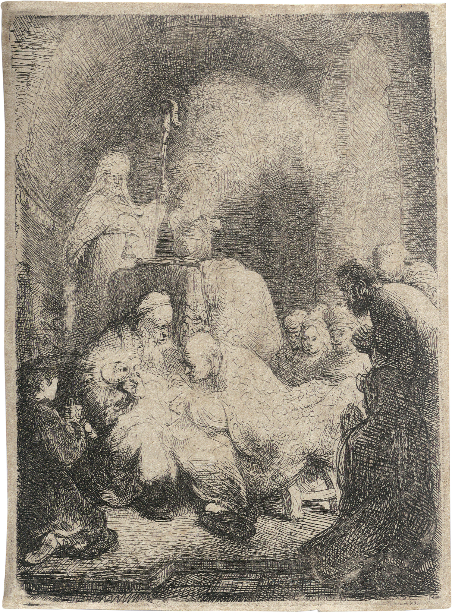 Die Beschneidung: kleine Platte. Radierung. 8,9 x 6,4 cm. Um 1630. B. 48, White/Boon (Hollstein) 48, Nowell-Usticke 48, Hinterding/Rutgers (New Hollstein) 55.