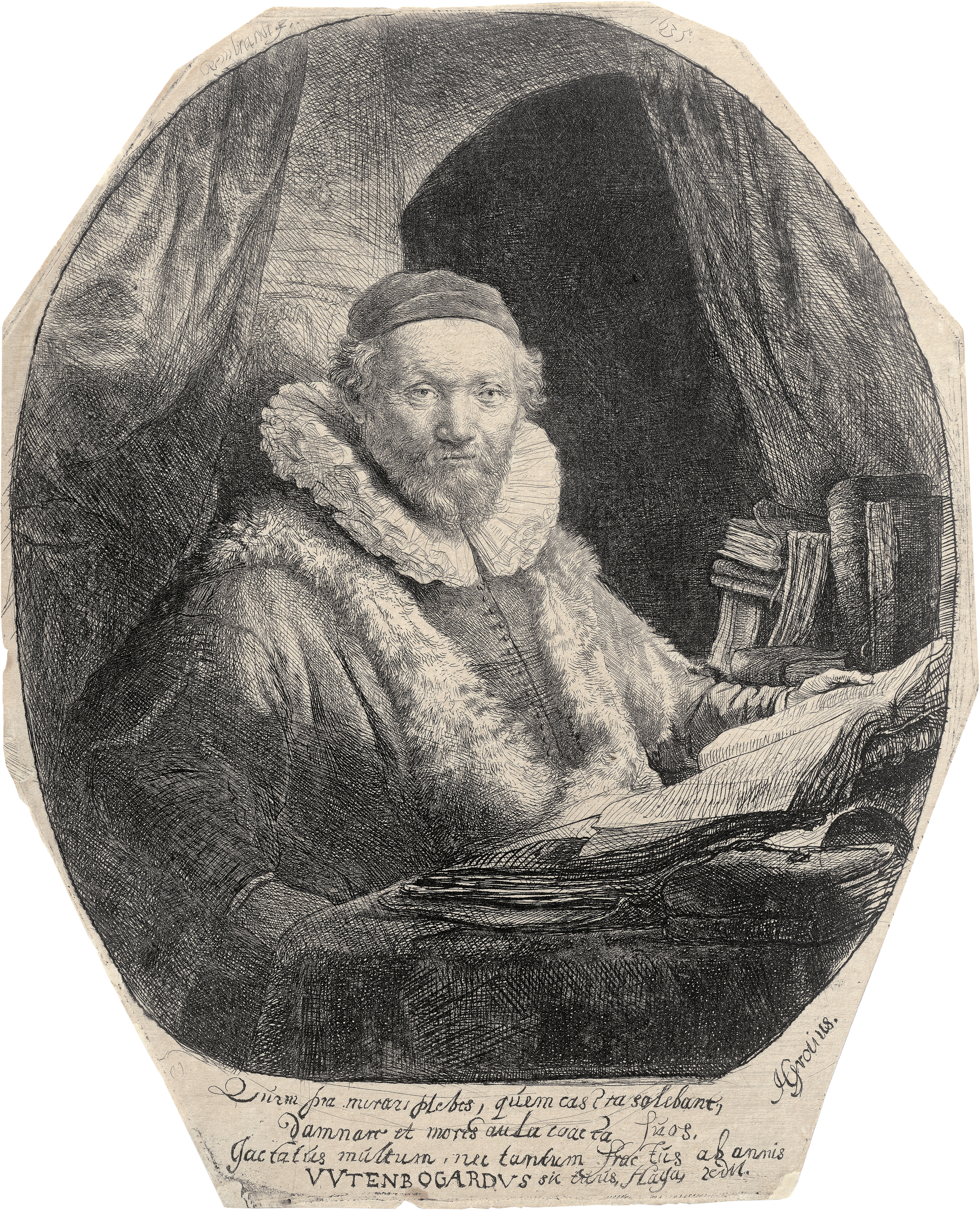 Bildnis des Jan Uijtenbogaert. Radierung. 22,4 x 22,1 x 18,3 cm. 1635. B. 279, White/Boon (Hollstein) 279 VI, Nowell-Usticke 279 wohl V (von VI), Hinterding/Rutgers (New Hollstein) 153 V (von IX).