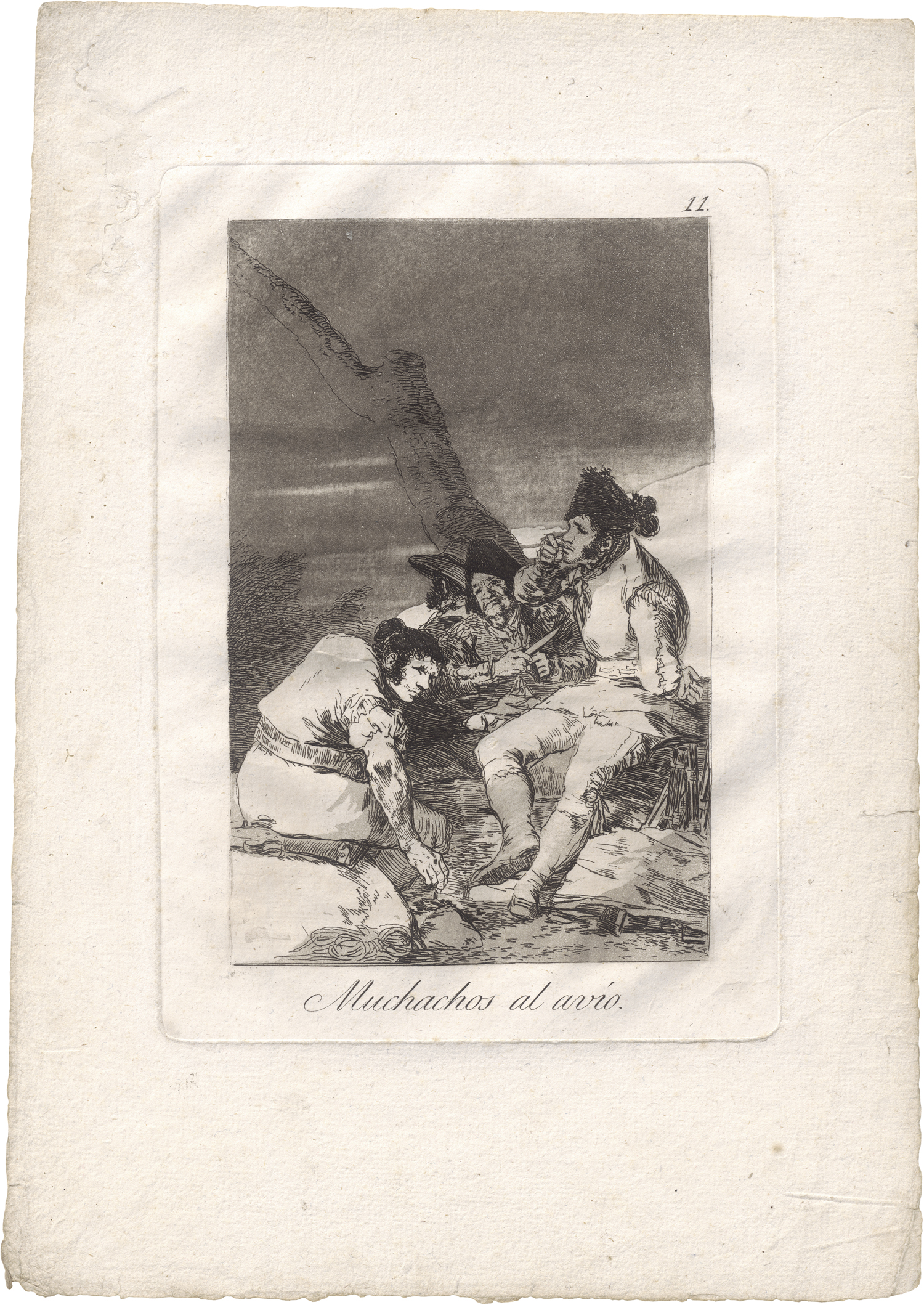Muchachos al avio. Radierung mit Aquatinta auf Bütten, aus der Folge Los Caprichos, wie auch die folgende Losnummer. 21,5 x 15,2 cm (Plattenrand); 31,8 x 22,6 cm (Blattgröße). (1799). Delteil 48, Harris 46 III, 1. Auflage (von 12).