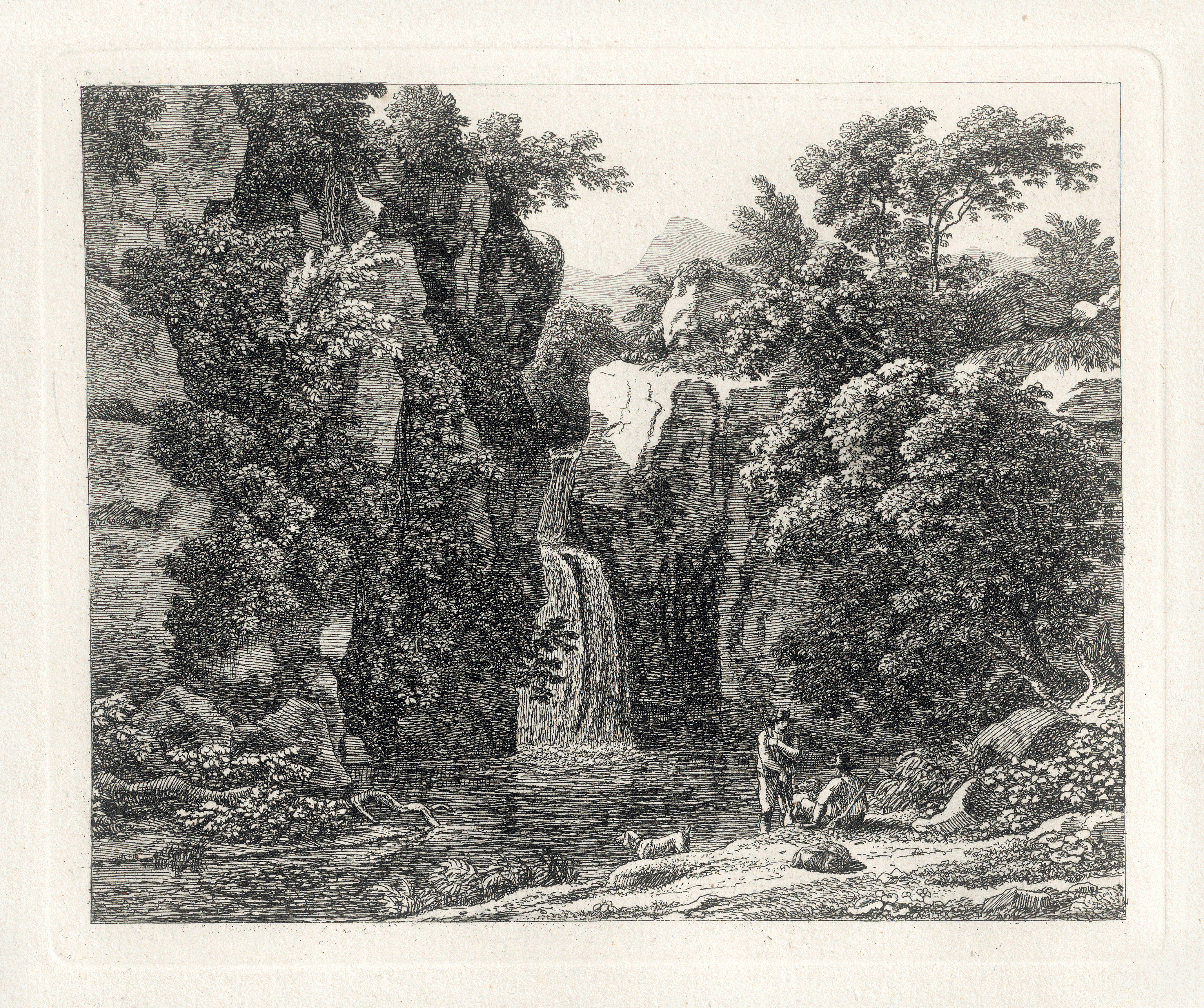 Die reizvolle, in den 1820er Jahren in Rom entstandene Folge gehört der reifen Schaffensphase des Künstlers an. Die intimen Landschaftsausschnitte sind in einer kleinteiligen, detaillierten Radiertechnik ausgeführt. Reinhart war zweifelsohne der begabteste Radierer unter den damals in Rom tätigen deutschen Künstlern. Sein besonderes Talent für die Wiedergabe von Licht und Atmosphäre ist ohne das Vorbild niederländischer Italianisanten des 17. Jahrhunderts, wie Jan Both, Karel Dujardin und Herman van Swanevelt nicht denkbar. Prachtvolle, kontrastreiche Drucke mit dem vollen Rand. Geringfügig angestaubt und fleckig, sonst sehr gut erhalten.
