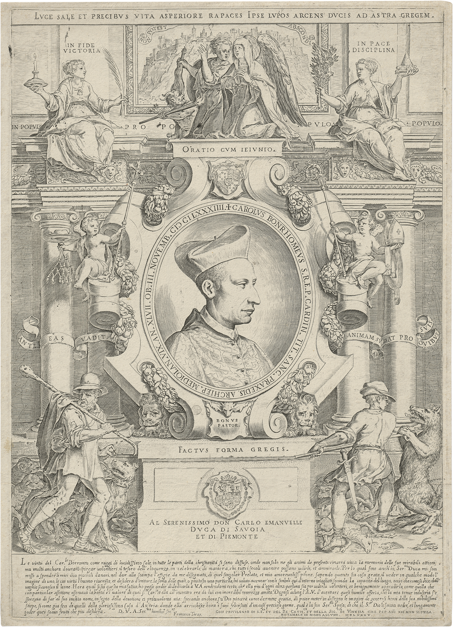 Bildnis Carlo Borromeo. Kupferstich nach Francesco Terzio. 48,3 x 34,5 cm. 1585. B. 138, Bohlin 132, TIB (Commentary) .127 S1 (von S2).