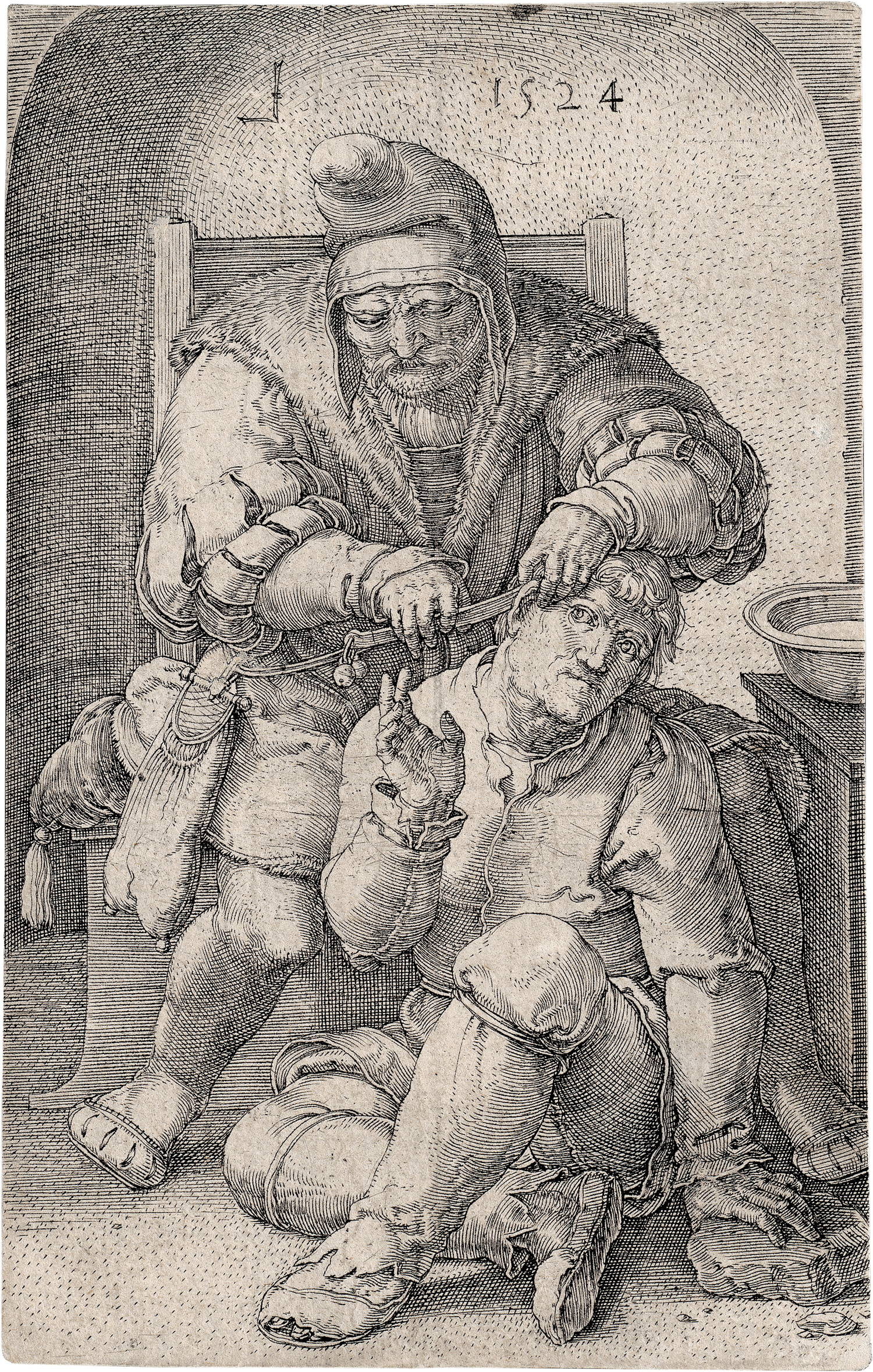 Der Chirurg. Kupferstich. 11,5 x 7,4 cm. 1524. B. 156, Hollstein 156, Filedt Kok (New Hollstein) 156 b-c (von c).