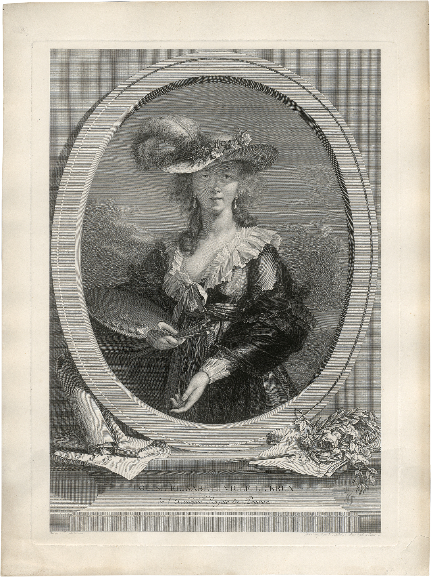 Selbstbildnis der Malerin Louise Elisabeth Vigée Lebrun. Kupferstich auf festem Velin. 43,4 x 31,7 cm. (1785). Le Blanc 18 III.