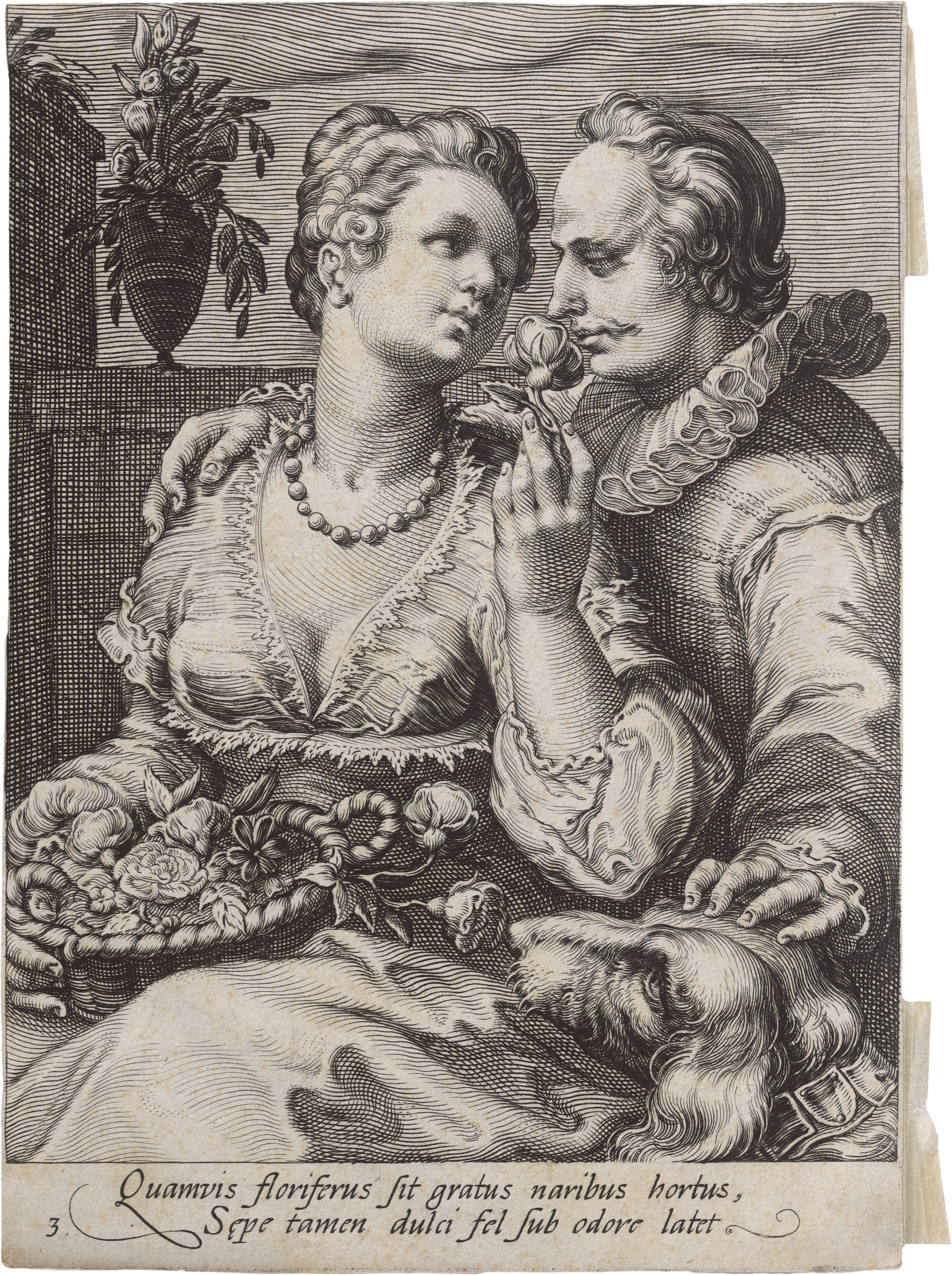 Guter, gleichmäßiger Druck mit feinem Rändchen. Beigegeben von J. Saenredam "Der Geruch" (B. 97) und Saenredam zugeschrieben "Der Frühling" (B. 119).