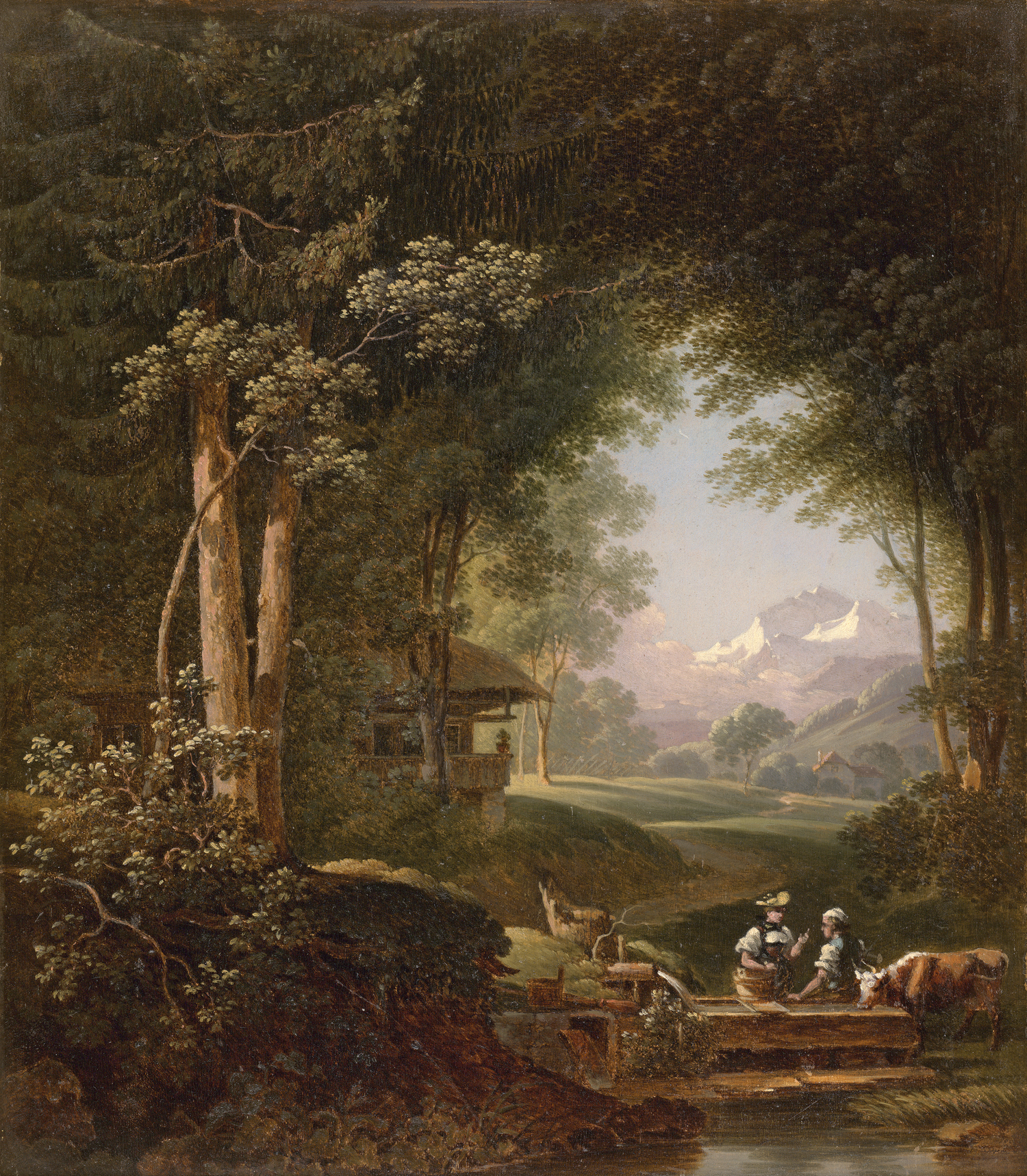 Trotz seiner Ausbildung zum Bildnismaler bei Johann Ulrich Schellenberg in Winterthur und Anton Graff in Dresden, entschloss sich Heinrich Rieter, bestärkt durch Salomon Gessner, Landschaftsmaler zu werden. Seit 1777 war er Gehilfe und Mitarbeiter von Johann Ludwig Aberli in Bern und übernahm nach dem Tod seines Lehrers dessen druckgraphische Werkstatt. Rieter war einer der führenden Berner Meister in dessen Nachfolge. Das vorliegende Gemälde entstand nach einer Invention von Ludwig Aberli, zu deren vollständigen Ausführung es jedoch nicht mehr kam, da Aberli über den Arbeiten verstarb. Aberli hatte aber Heinrich Rieter vorher instruiert, wie das Werk zu vollenden sei. 1817 verfasste Rieter im "Neujahrsstück herausgegeben von der Künstler-Gesellschaft in Zürich" eine Abhandlung über Aberli, die auch eine Radierung nach dieser letzten Komposition von Aberli enthielt und somit auch das vorliegende Werk dokumentiert.