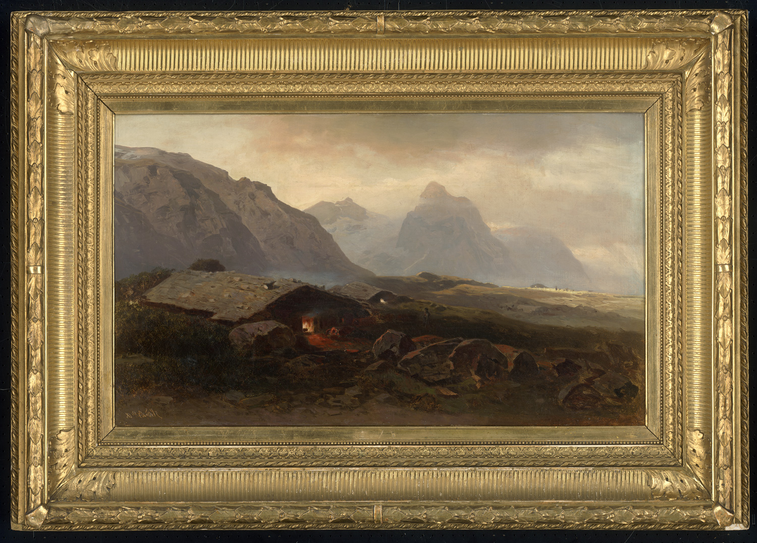 (1853-1893, München)Alpenlandschaft mit Sennerhütten