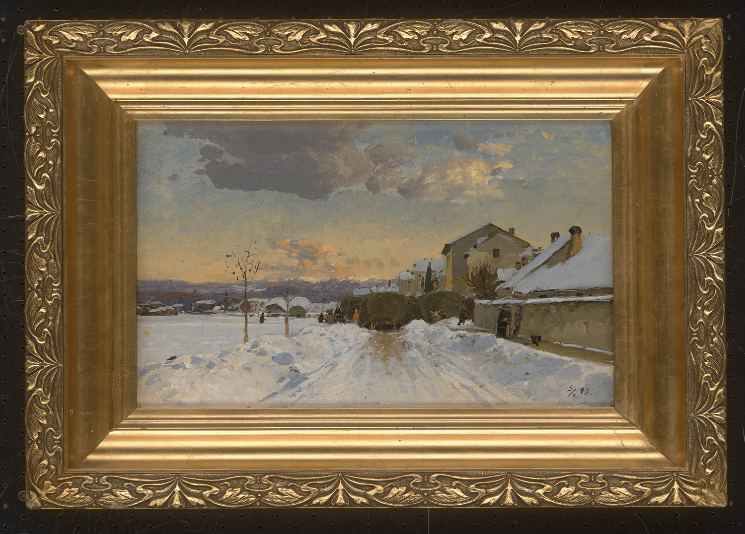 Öl auf Leinwand, alt auf Karton kaschiert. 20,5 x 32,2 cm. Unten rechts datiert "5/1 [18]93.".