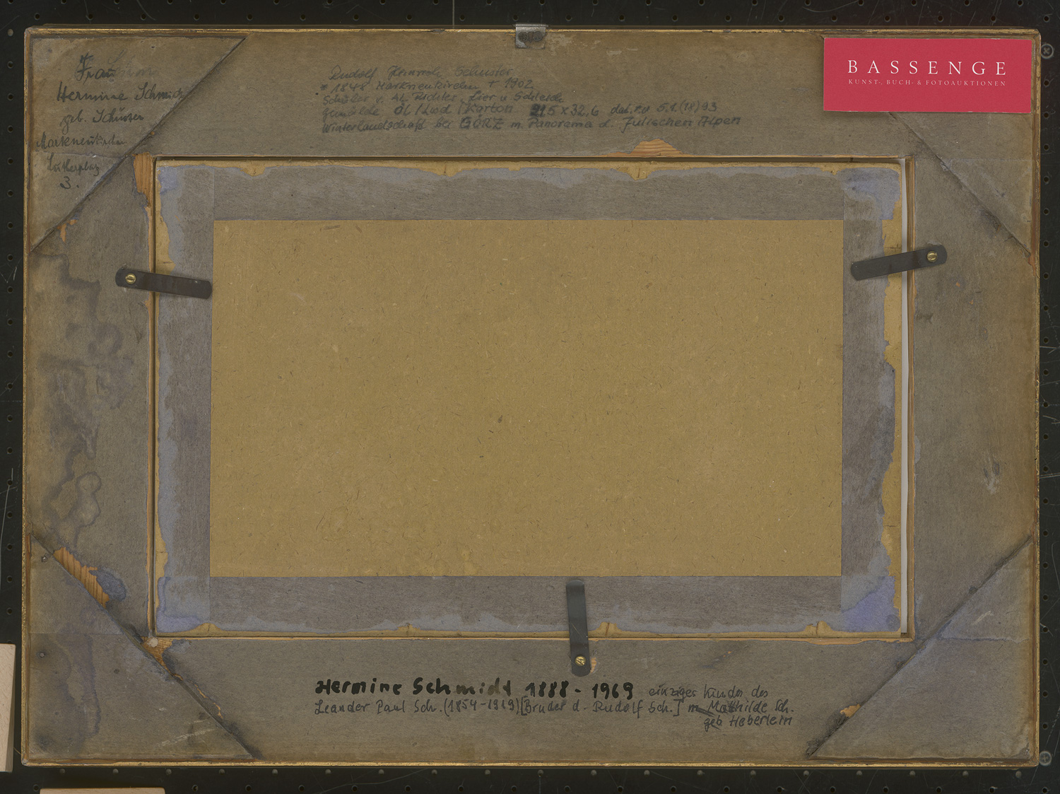 Dessen Tochter Hermine Schmidt, geb. Schuster (1888-1968, ihre Adresse handschriftl. verso auf dem Rahmen).
