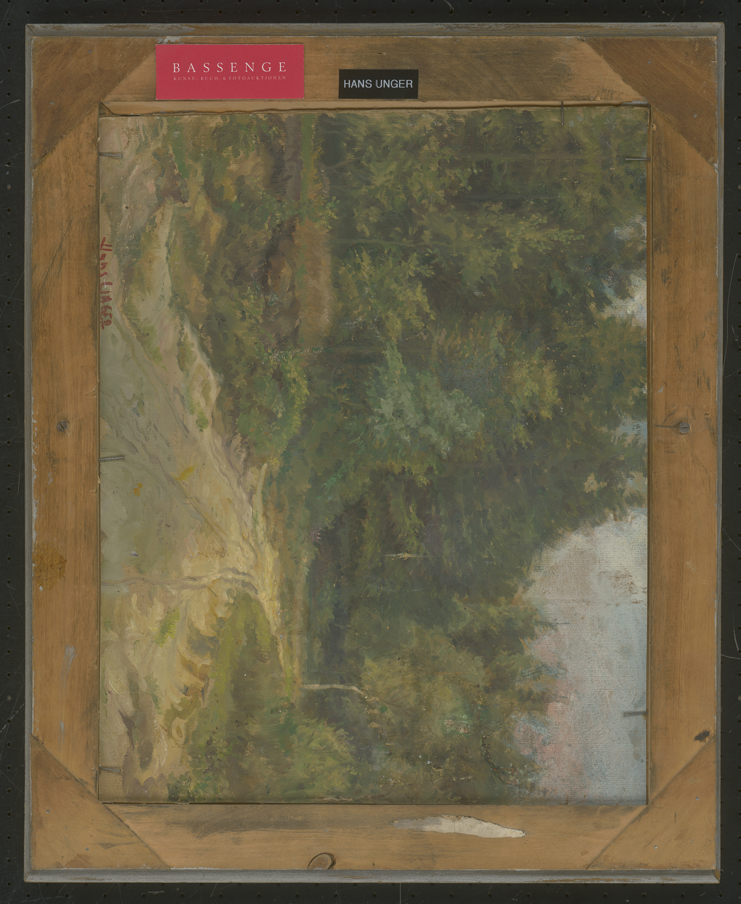 Öl auf Malpappe, verso: Waldweg. 41,3 x 33,4 cm. Verso unten links in Rot bezeichnet "Hans UNGER".