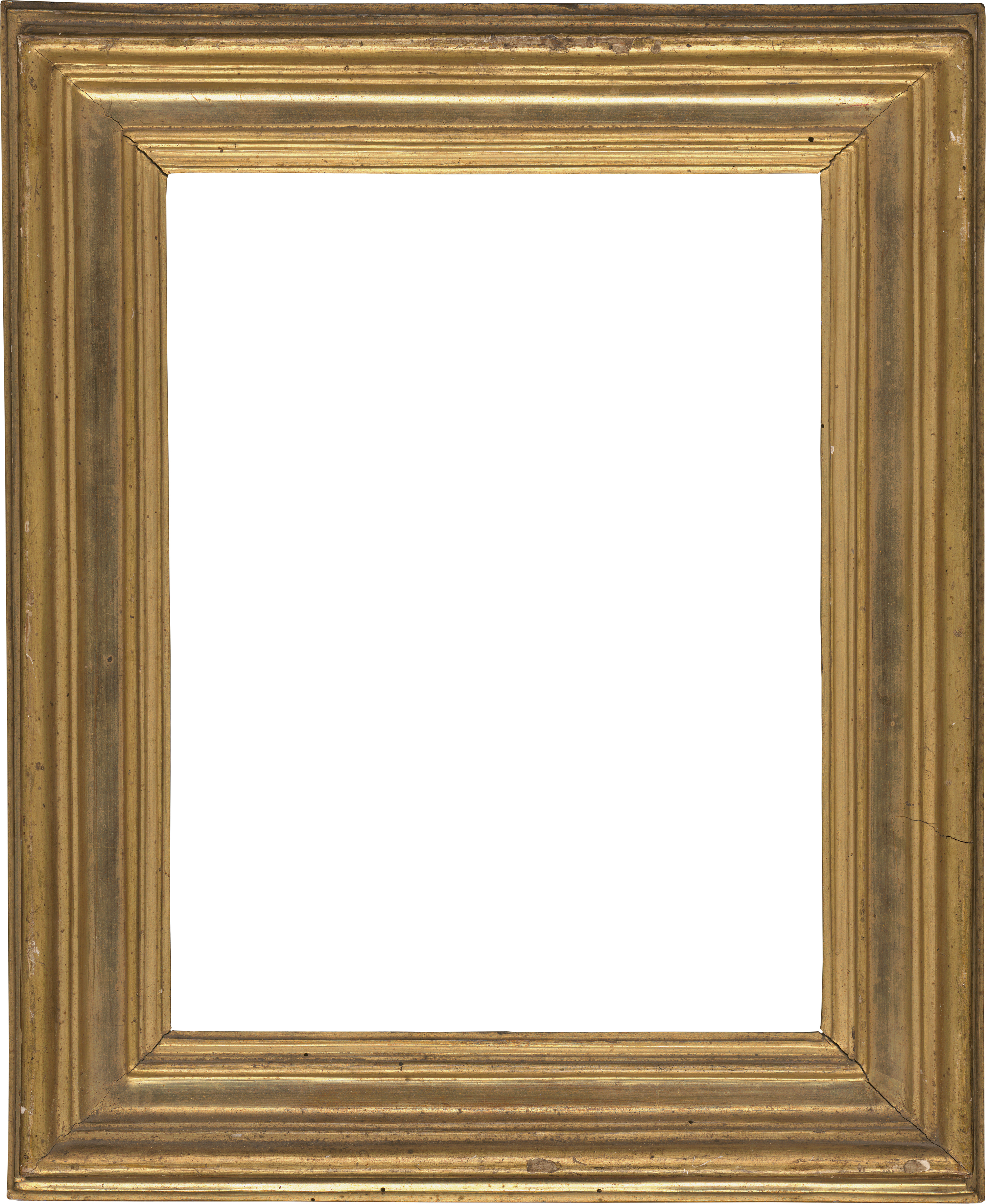 vergoldet, profilierte Sichtleiste, Halbrundstab, ansteigende Kehle, hinterkehltes Wulstprofil, abfallende Kehle als Abschluss. Mit altem Aufhänger.