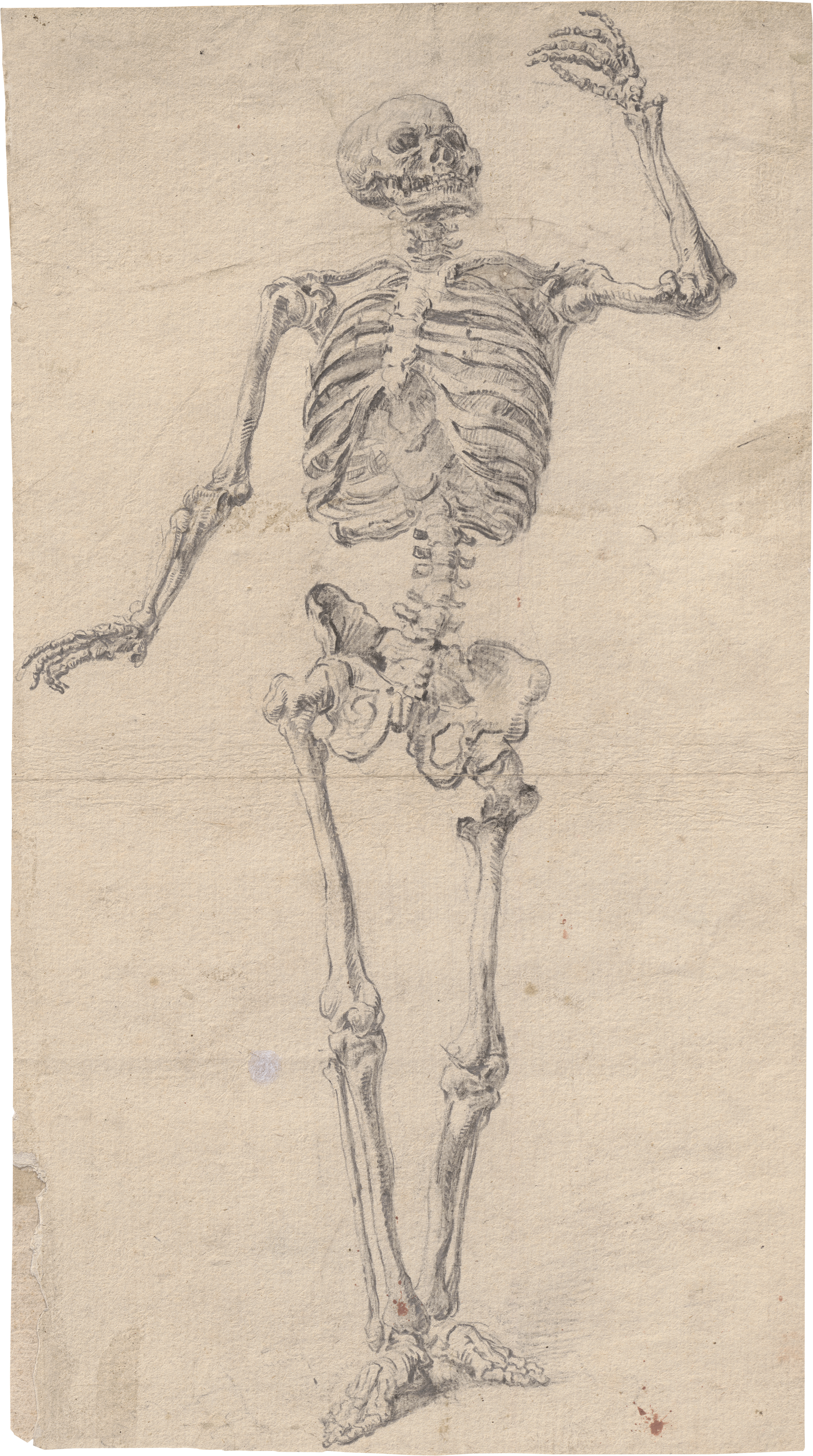16. oder 17. Jh. Stehendes Skelett mit erhobenem Arm