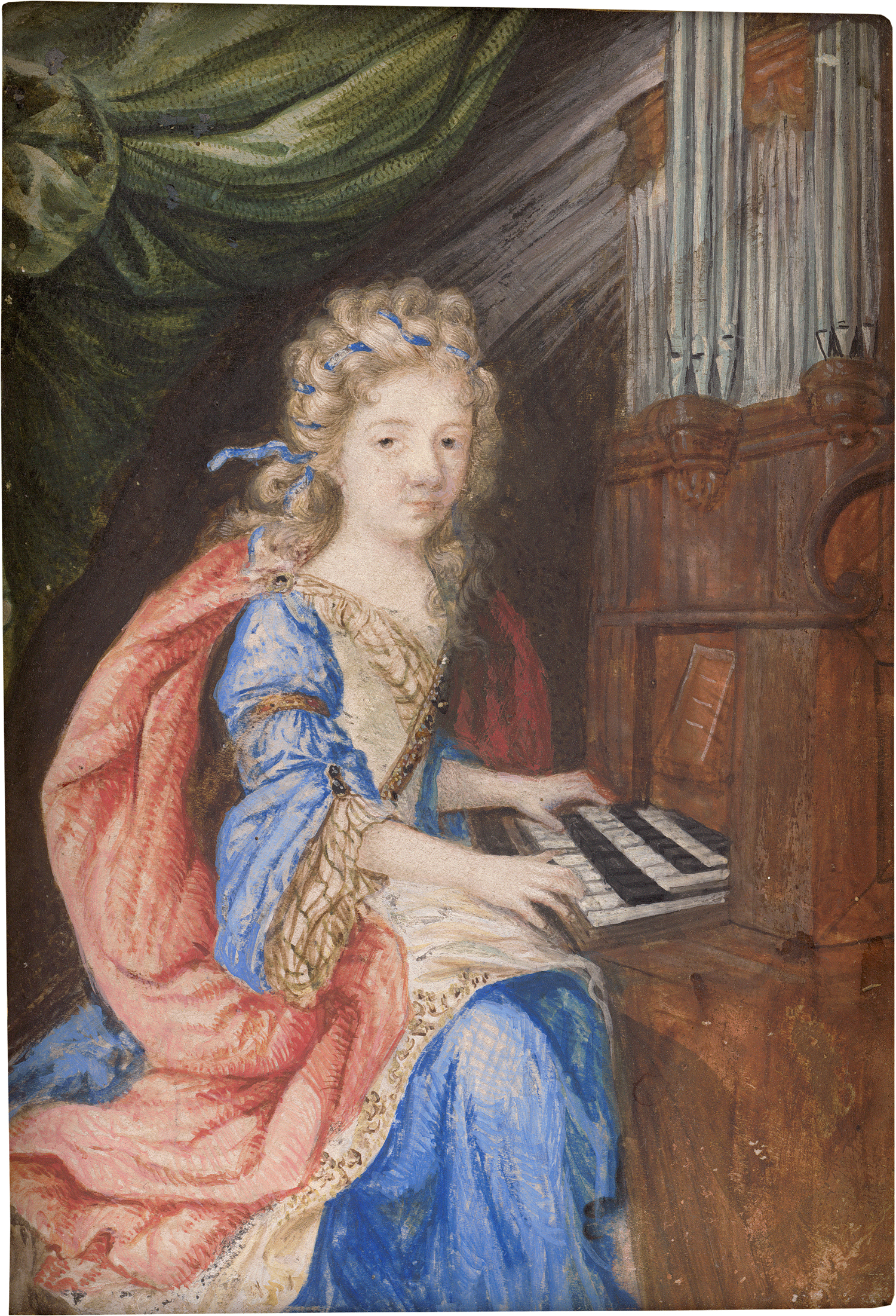 um 1680. Bildnis einer Edeldame beim Orgelspiel