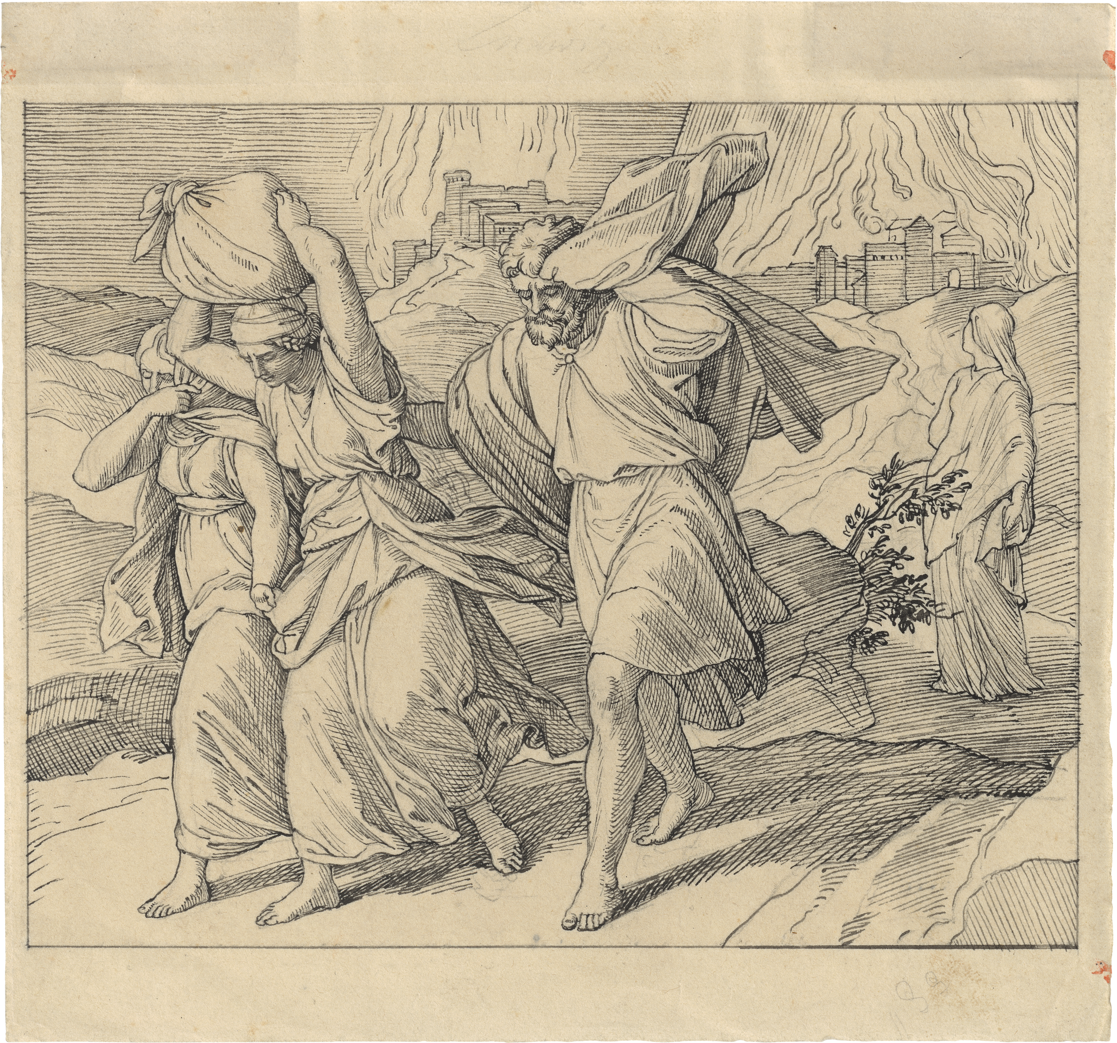 (1794 Leipzig - 1872 Dresden)Loth flieht mit seiner Familie aus dem brennenden Sodom