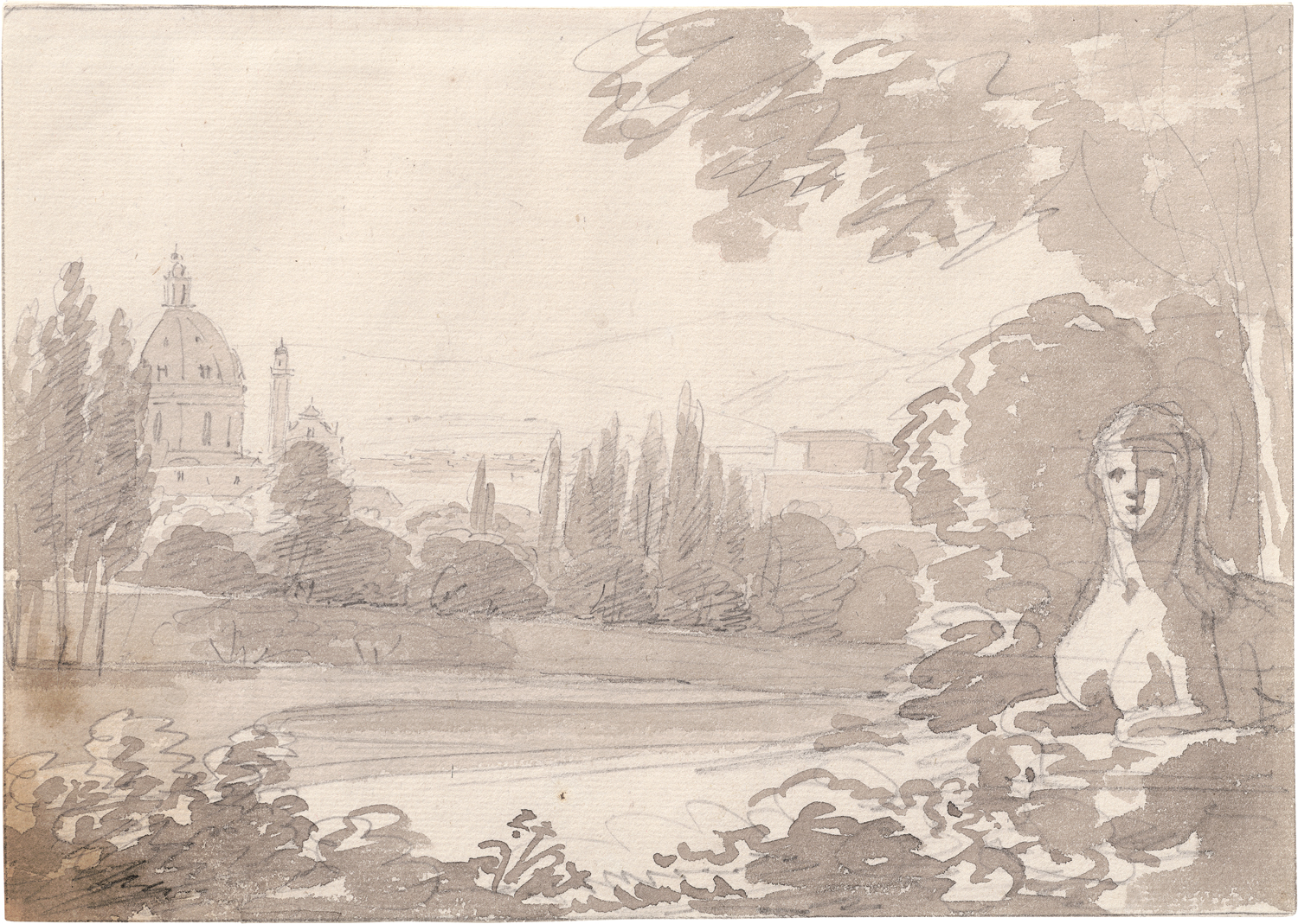 (1769 Grüngiebing - 1841 München)Südliche Flusslandschaft mit Sphinx