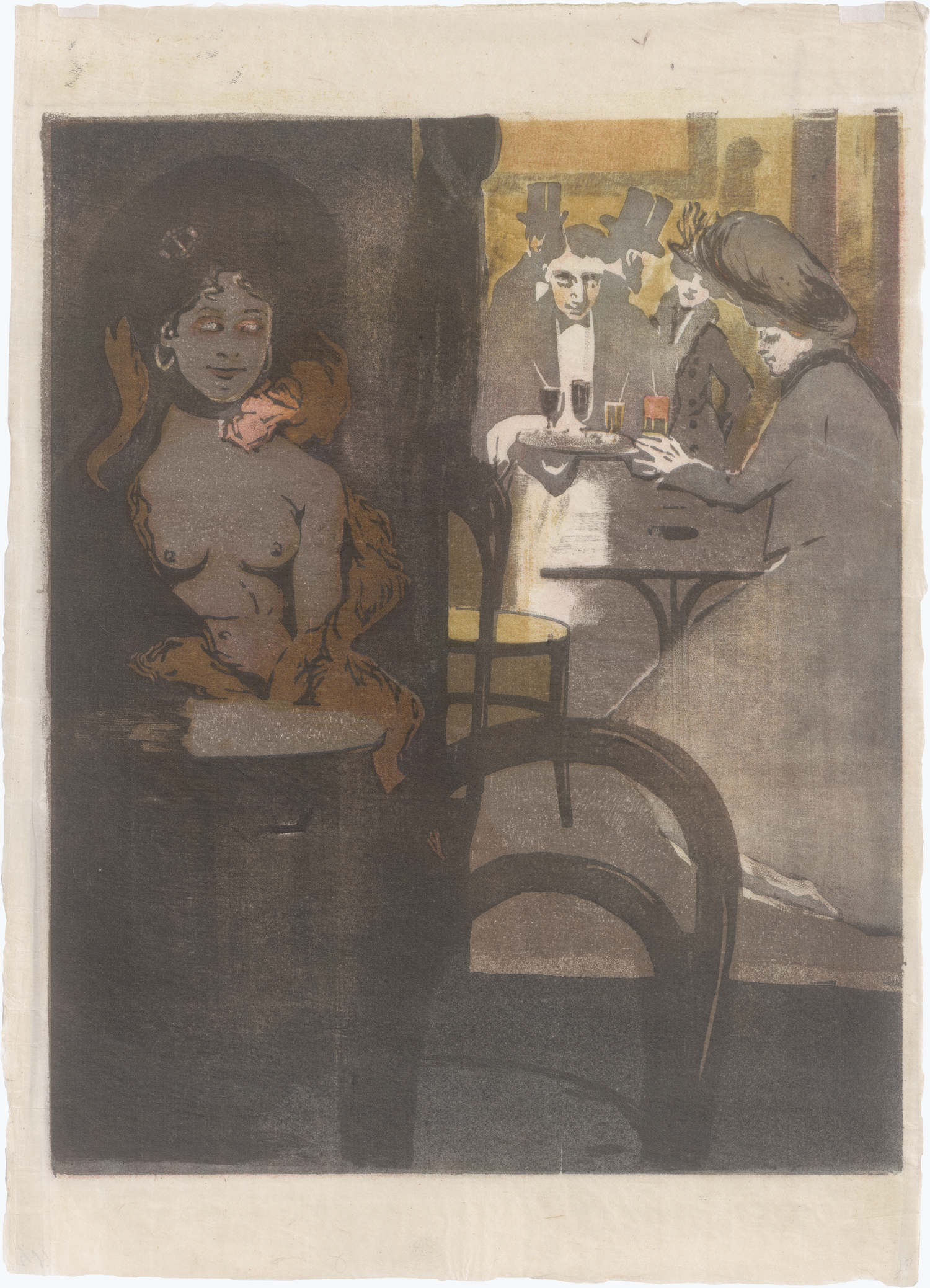 Gemeinsam mit seinem Bruder Ernst gehörte Hans Neumann zum Mitarbeiterkreis der Zeitschrift "Jugend", wo Otto Eckmann die Beschäftigung mit dem Farbholzschnitt angeregt hatte. Hans Neumann widmete sich daraufhin intensiv diesem Medium und schuf einige der eindrucksvollsten Farbholzschnitte des Münchner Jugendstils, von denen "Vampyr" sicherlich die rätselhafteste Komposition ist. Prachtvoller Druck mit feinen Farbabstufungen, mit Rand bzw. kleinem Rand.