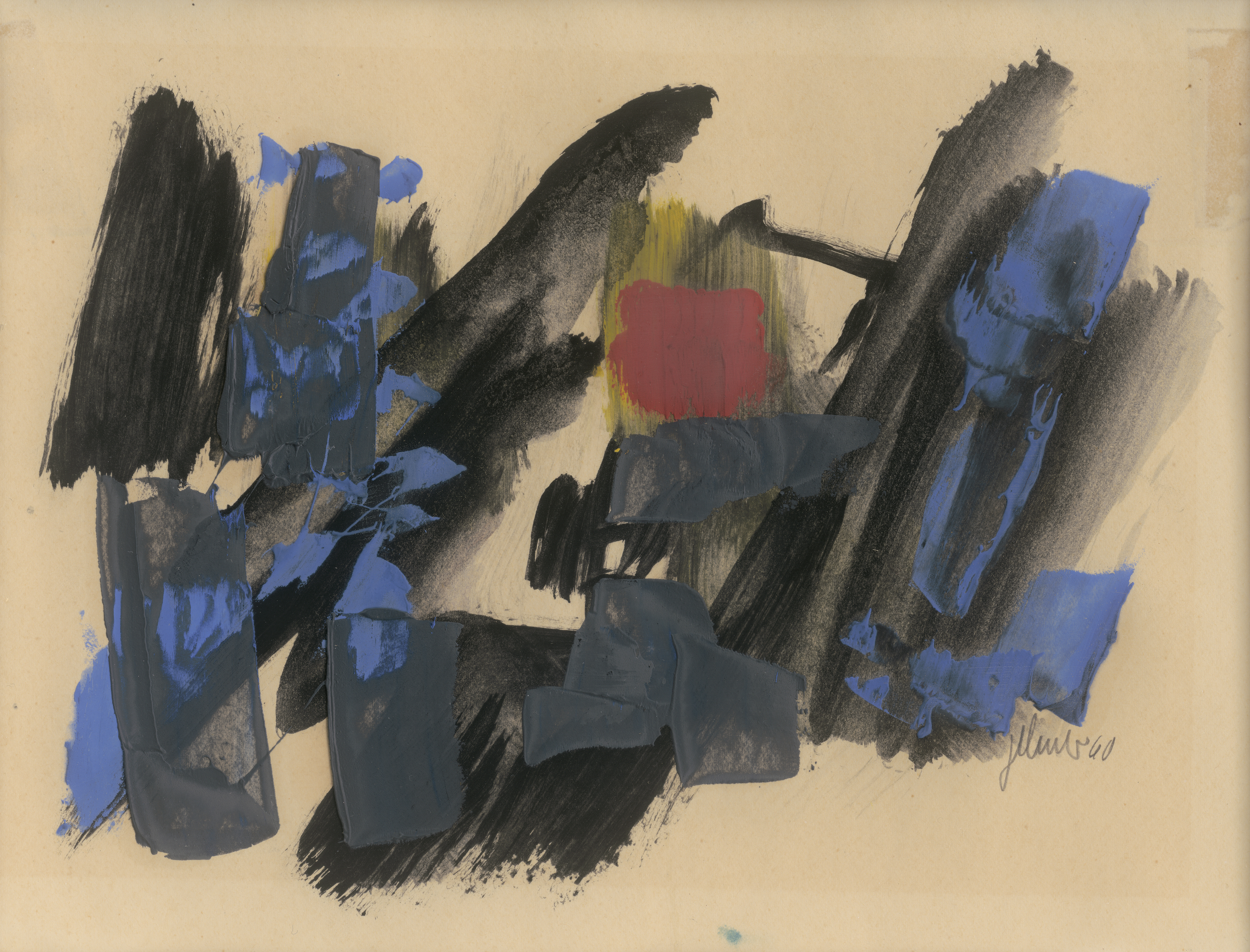 Im Jahr 1960 finden sich häufiger dynamische Schwünge in Winters Kompositionen. Auch hier setzt er die Farben mit energischen, heftigen Bewegungen des Spachtels und der Pinsel auf die helle Bildfläche, mit diagonal gerichtetem Gestus in intensiven, zumeist dunkeltonigen Farben. Bei Winters kleinformatigen Ölbildern auf Papier, die um 1960 entstanden, wird das "Anti-Formalistische (...) zum primären Prinzip. Bei ihnen kommt die Beschleunigung der Ausführung und ein weit gespanntes Farbspektrum zum Tragen." (Gabriele Lohberg, Fritz Winter. Leben und Werk, München 1986, S. 85). In diesen kleineren Blättern spielt er souverän und voller Experimentierfreude mit den Möglichkeiten des assoziativen Komponierens.
