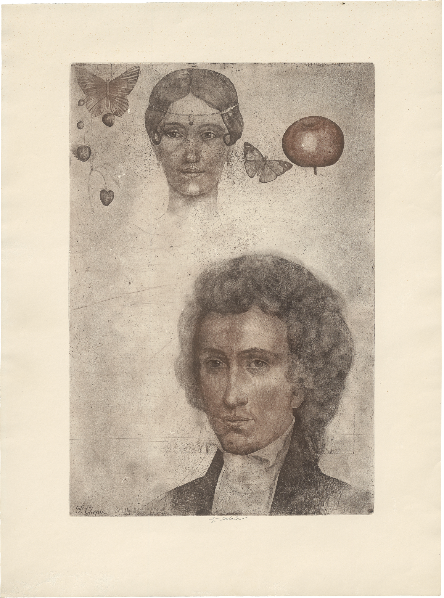 Farbradierung mit Vernis mou und Aquatinta auf Van Gelder Zonen-Velin. 1988.