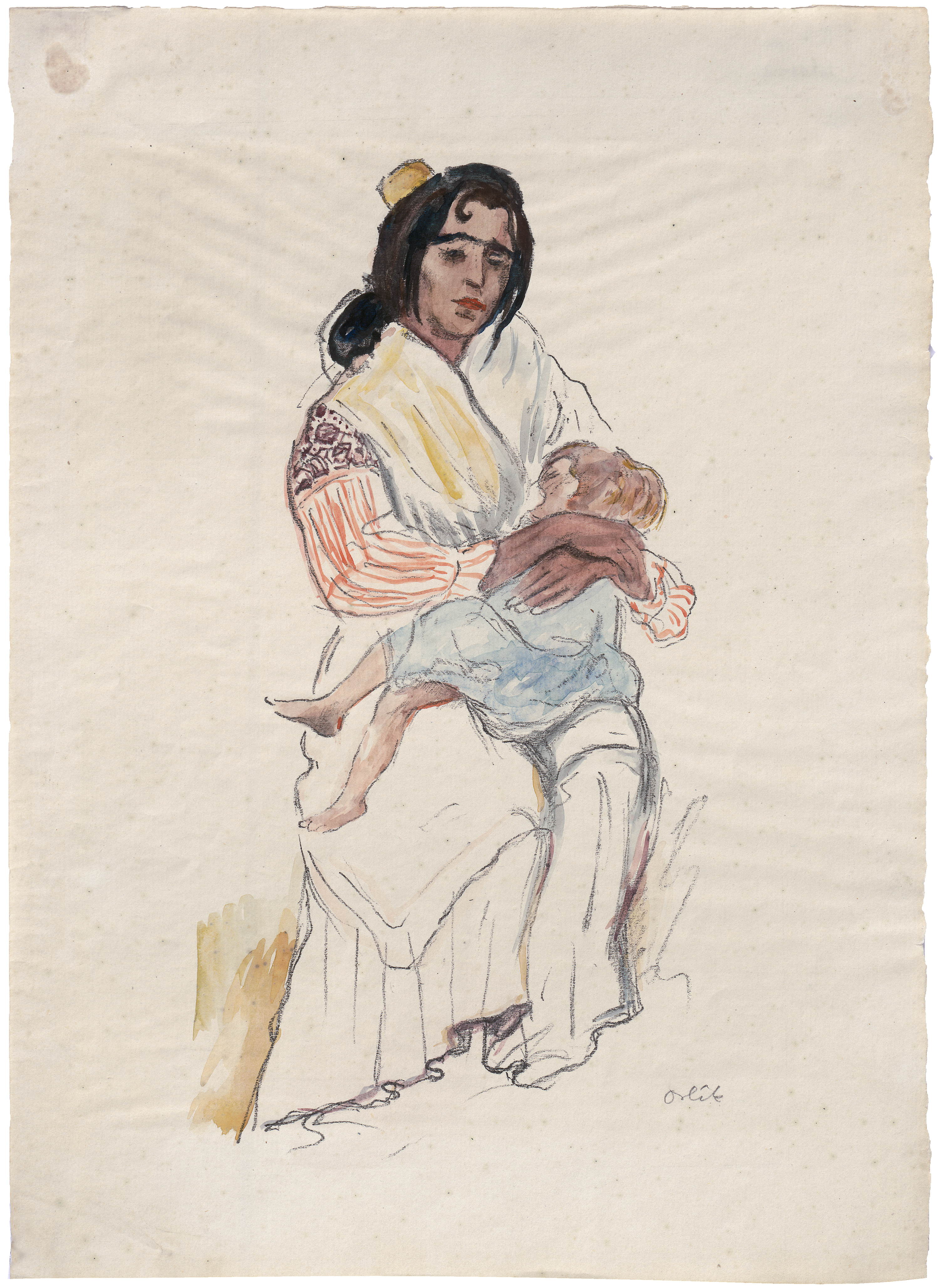 Die 1927 bei Bruno Cassirer in Berlin verlegte Mappe mit zehn Lithographien Orliks erschien in einer Gesamtauflage von 30 Exemplaren, davon 10 der Vorzugsausgabe auf Japan und 20 auf holländischem Bütten. Vorhanden sind u.a. folgende Motive "Spanische Zigeuner - Sevilla" sowie "Der Sänger Manuel Torres", "Gitarrespieler" und "Sevillaner". (Voss-Andreae L 711-720, zwei Blätter hier aus der Normalausgabe). Lebendige Schilderungen der spanischen Tänzer und Sänger, die Orlik 1925 auf seiner Reise nach Spanien mit den Stationen Madrid, Sevilla und Toledo festhielt. Prachtvolle Drucke der vollständigen Mappe, mit breitem Rand, rechts teils mit dem Schöpfrand.