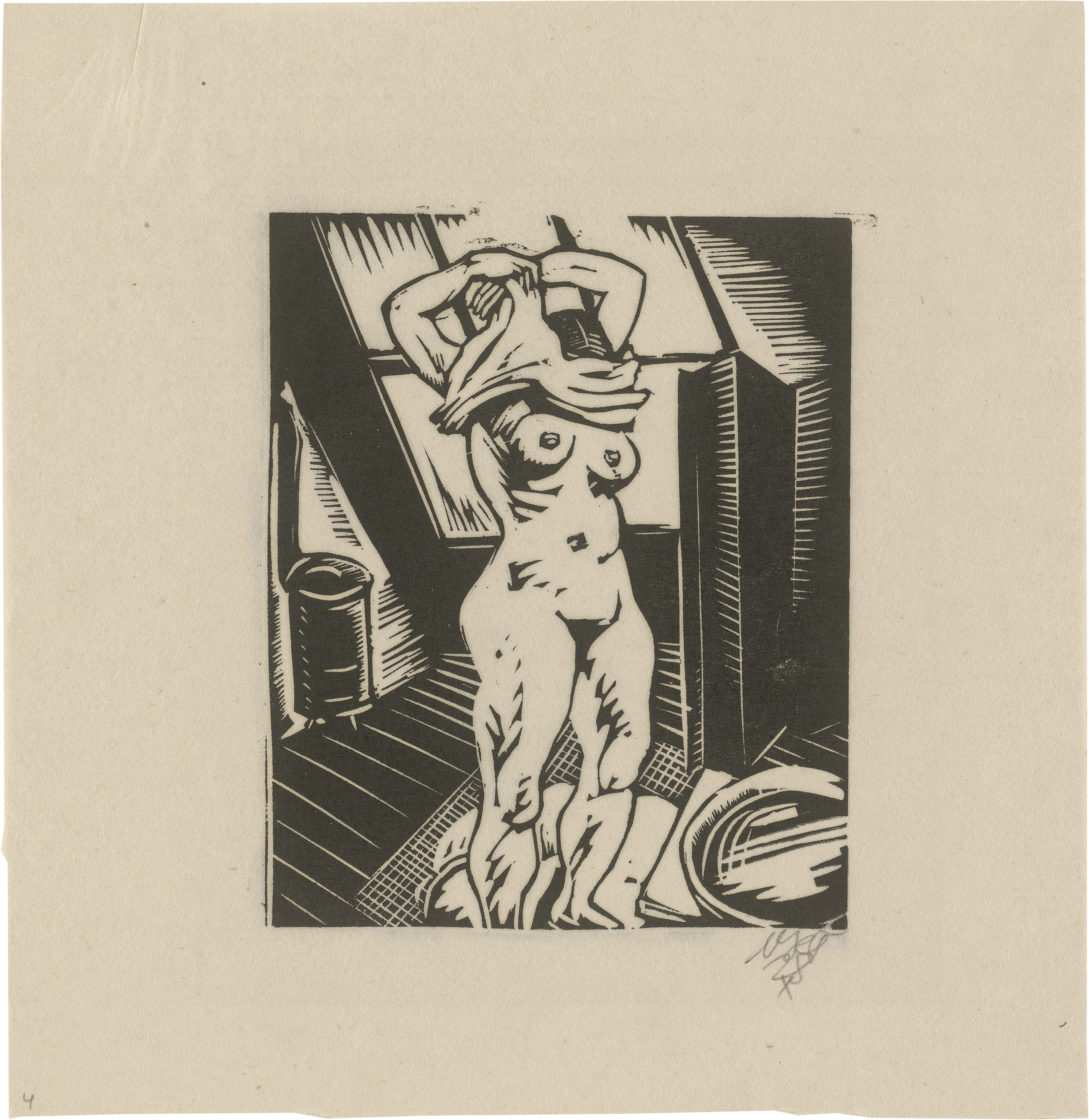 1 Bl. Holzschnitt und 6 Bl. Monotypien (2 kolorierte) auf dünnem Japan. Um 1928-30.