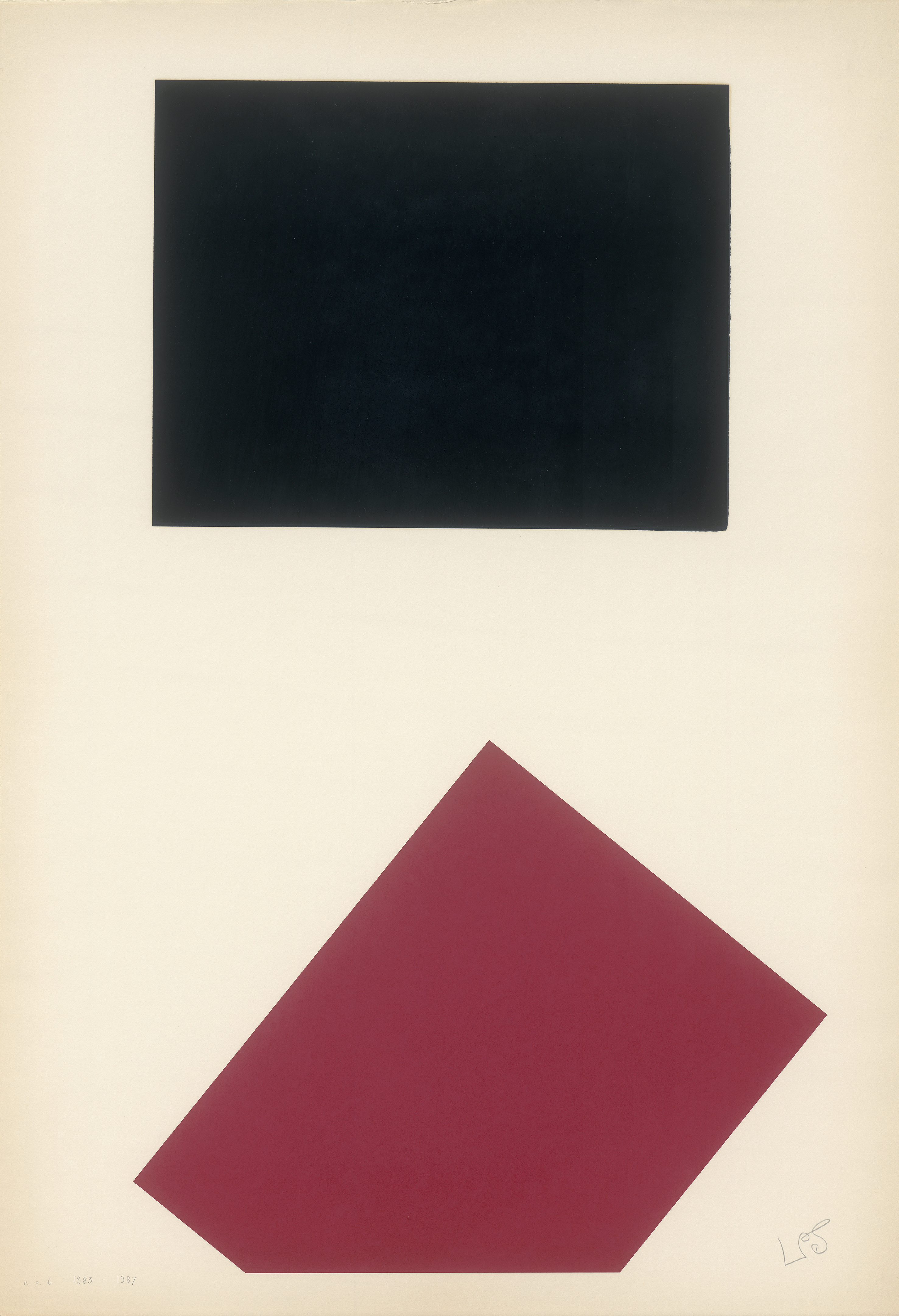 Aus Smiths Dokumentation konkreter konstruktiver Kunst, herausgegeben und gedruckt von der Edition Hoffmann, Friedberg 1987, in einer Auflage von 90 numerierten Exemplaren. Prachtvoller Druck des großformatigen Motivs mit dem vollen Rand, oben mit dem Schöpfrand.