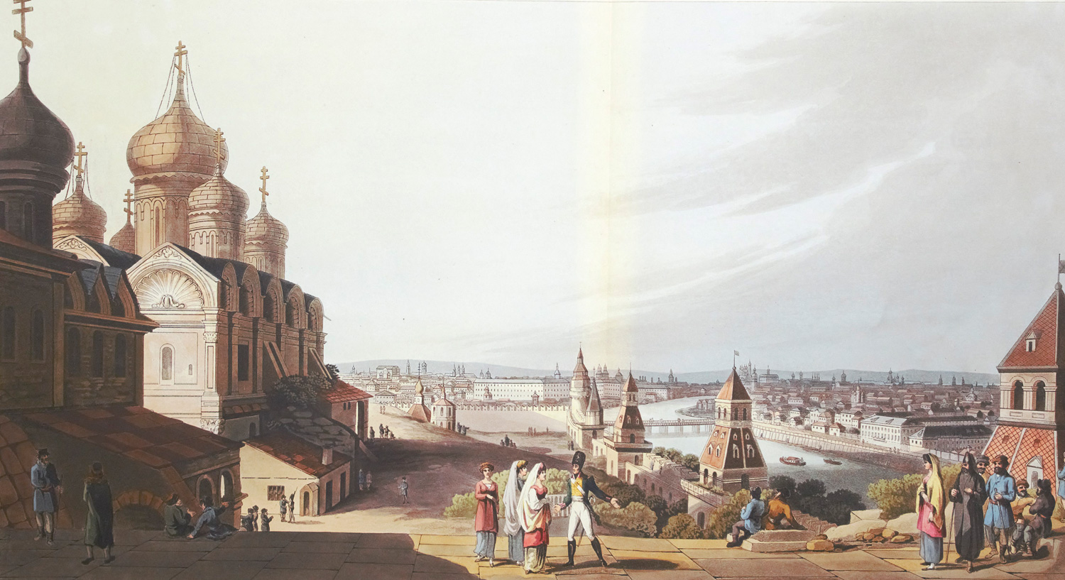 Bowyer, Robert. Moskow. Kolorierte Aquatinta. 28 x 51,5 cm (Darstellung) bzw. 48 x 61 cm (Blatt). London, Robert Boyer, 1815.