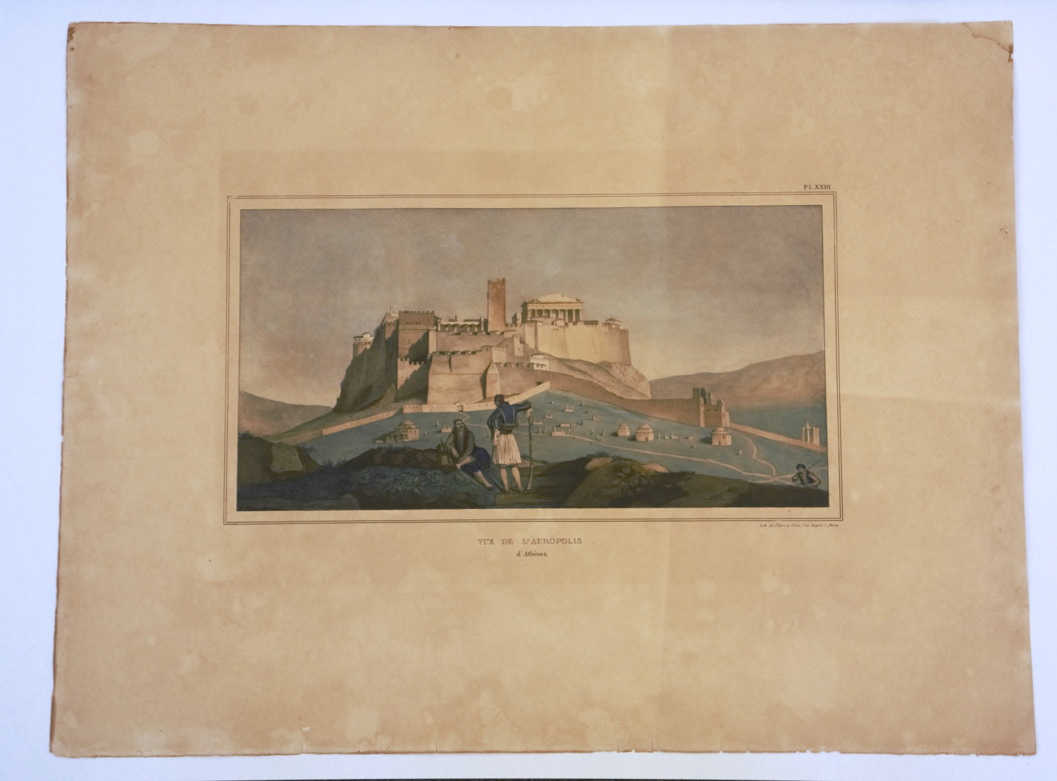 Dupré, Louis. Vue de l’Acropolis d’Athéns. Kolorierte Lithographie. 48,5 x 63 cm. Paris, Dondey-Dupré, 1825.